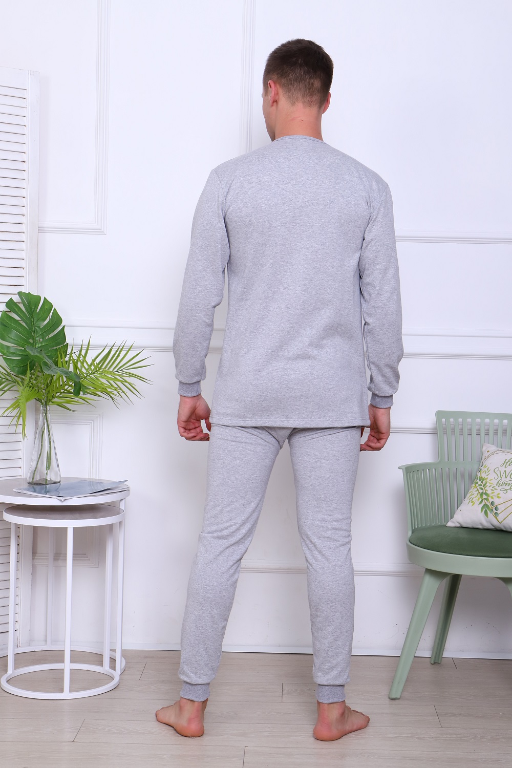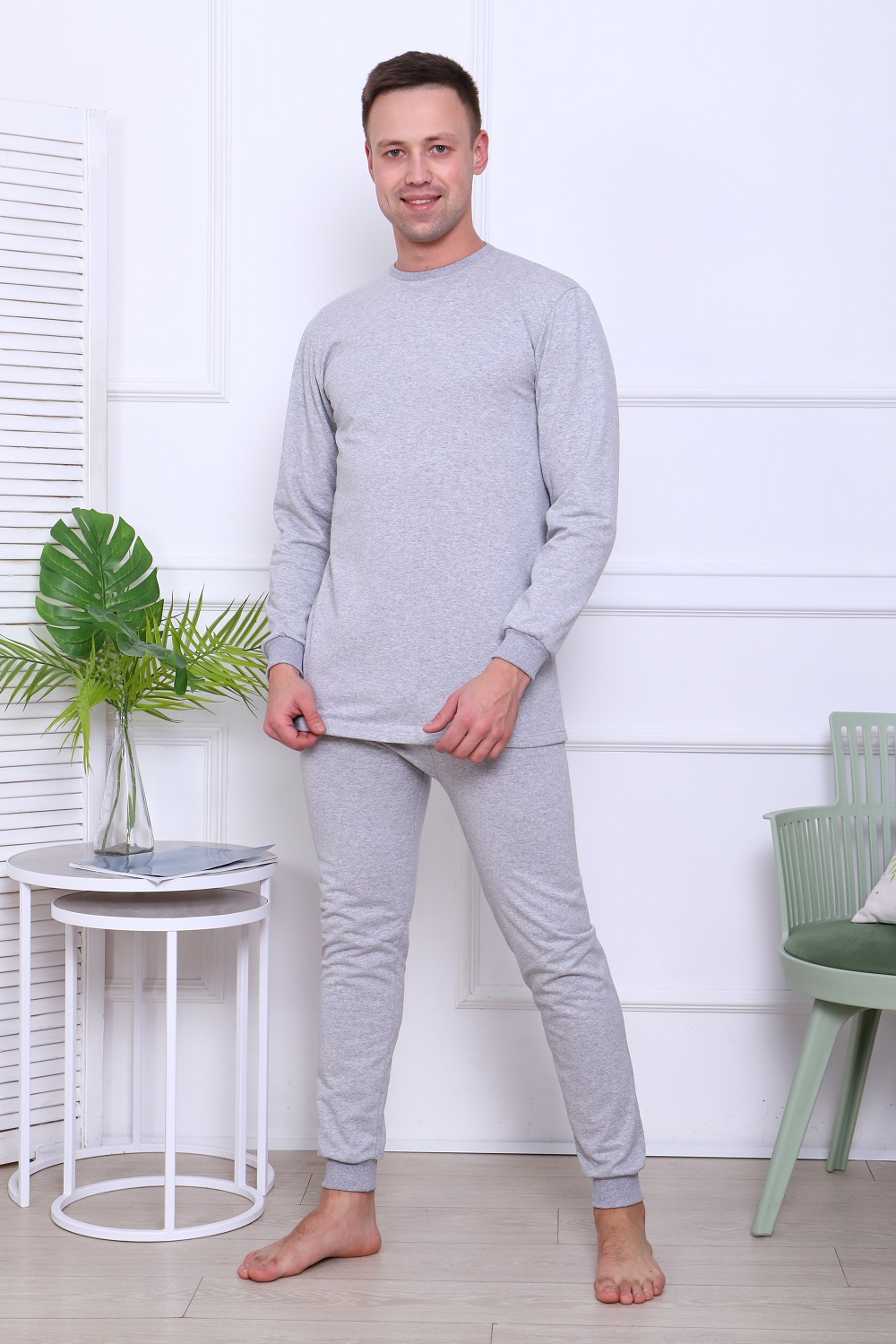 Костюм мужской домашний теплый. Футболка с длинным рукавом и штаны на эластичном поясе, с манжетами. Комфортный и уютный, из 100% хлопка, начёс на изнаночной стороне.