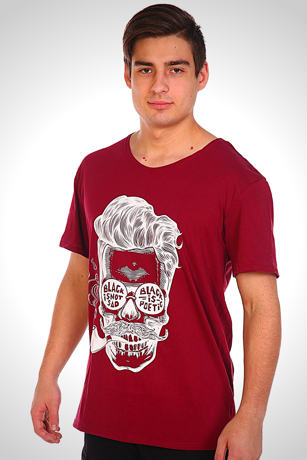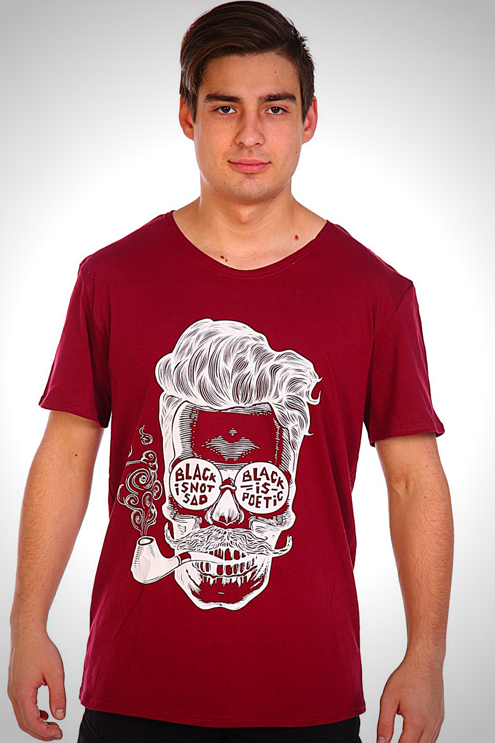 На футболке изображен оригинальный принт: чувак курит трубку, что придаёт ей уникальность и позволяет выразить индивидуальность владельца.
