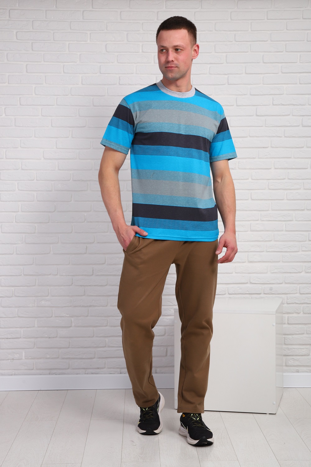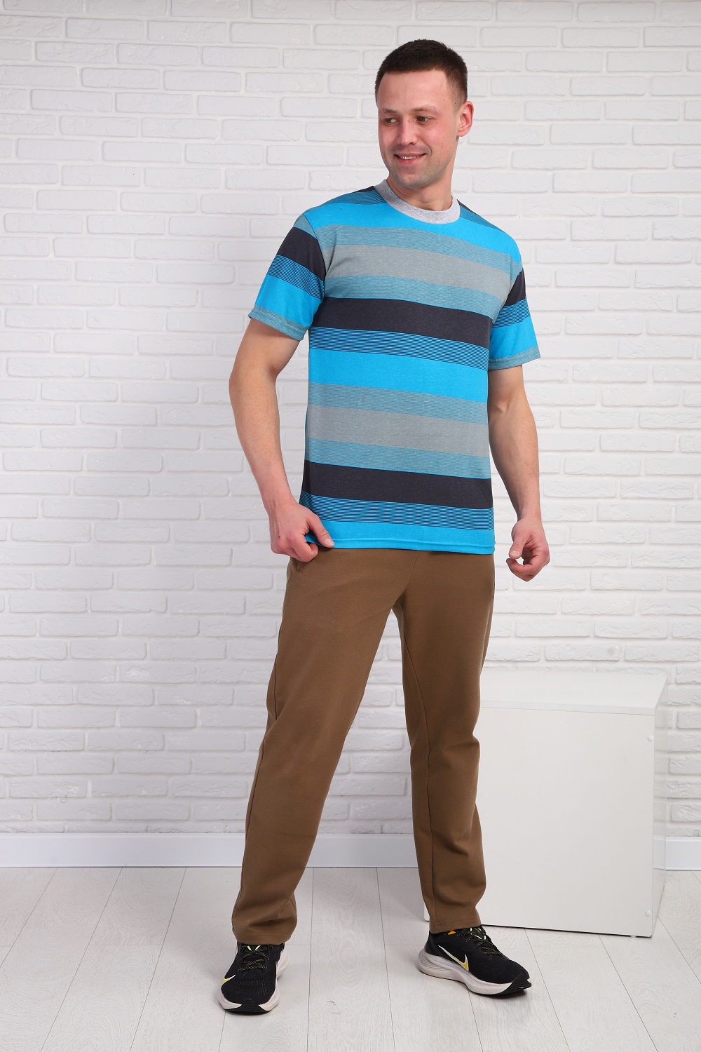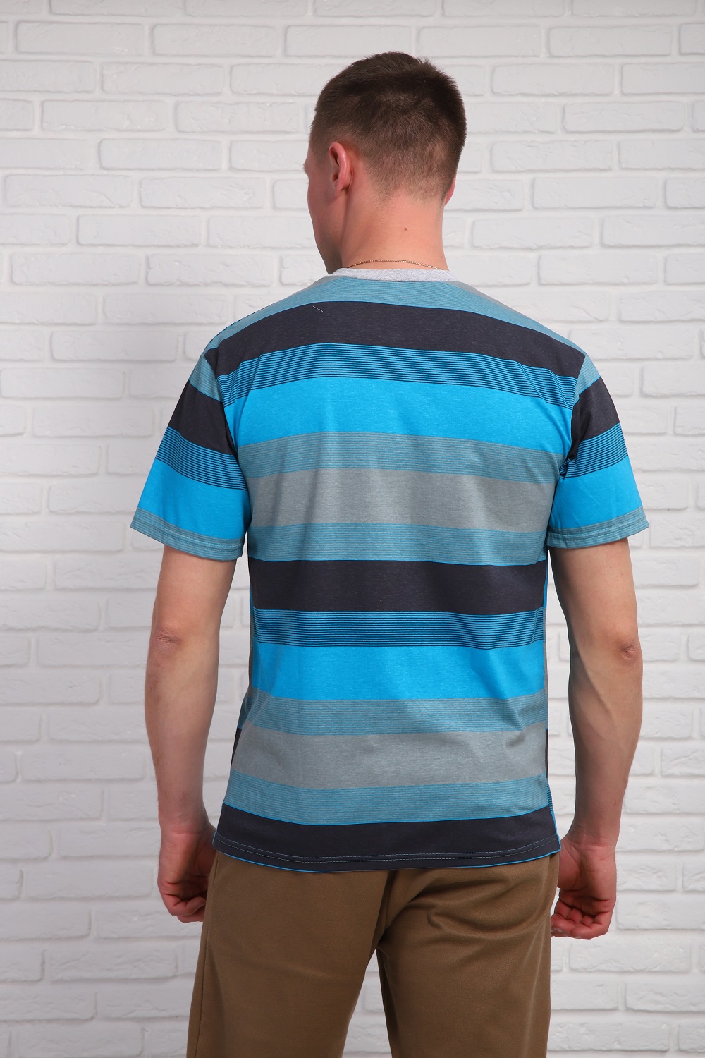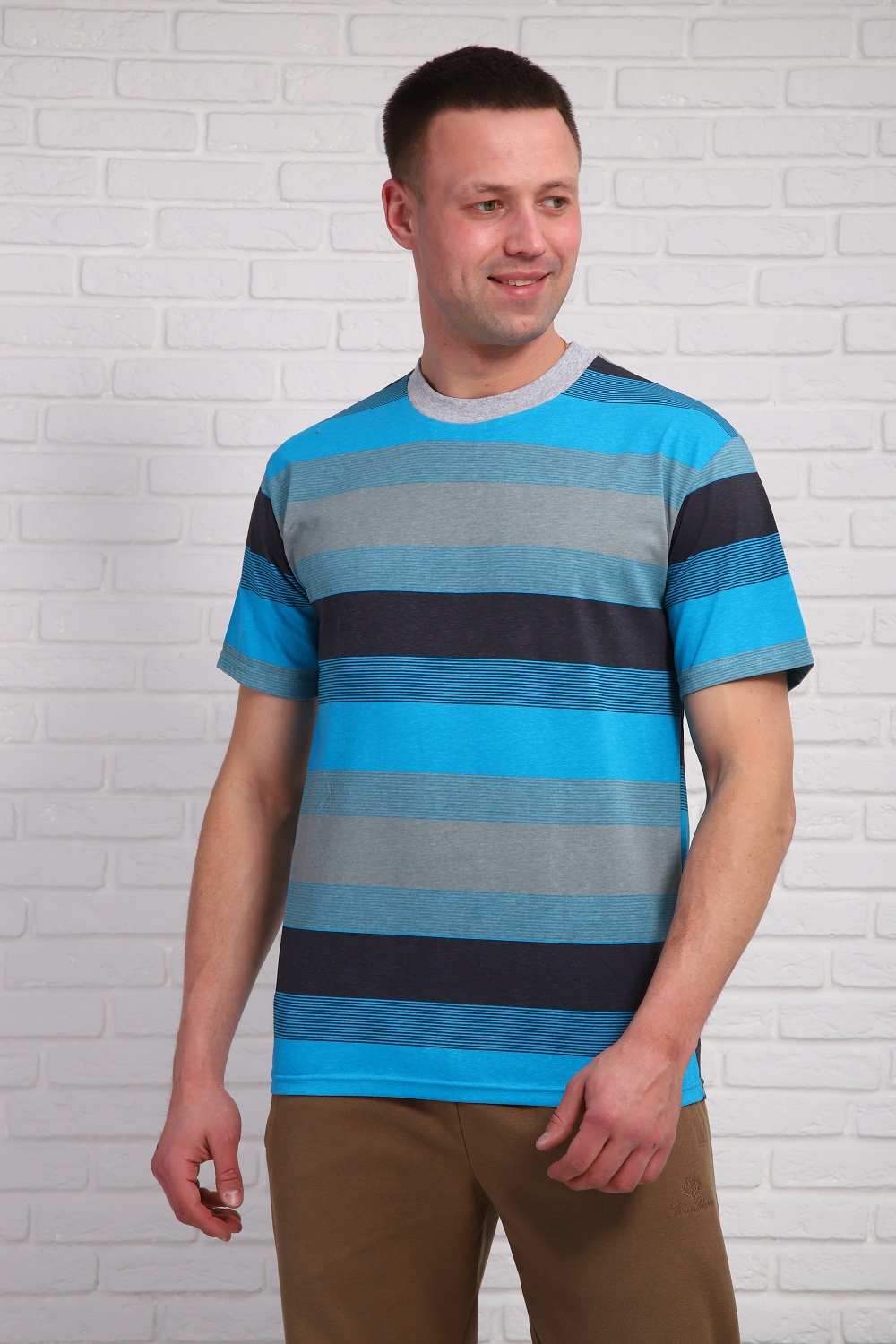 Мужская футболка в полоску, короткий рукав, с круглой горловиной. 100% хлопок. ,