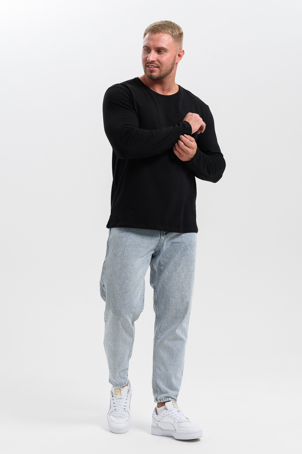 Лонгслив снова в моде и прочно обосновался в базовом гардеробе современного человека. Удобная трикотажная кофта представляет собой футболку с длинным рукавом, которую можно использовать как самостоятельный элемент, так и носить под пиджак, толстовку или рубашку. Лонгслив выполнен из высокоплотного хлопкового трикотажа и является невероятно комфортным и удобным. Футболка с длинными рукавами имеет прямой базовый крой и классическую линию плеча. Лонгслив - это неформальный стиль, когда на футболку можно надеть клетчатую рубашку и сочетать с кедами и джинсами. За счет натуральной ткани лонгслив можно носить в качестве домашней одежды или нательного белья, одежды для сна, тренировочной спортивной одежды и военной экипировки. Если вы хотите силуэт оверсайз нужно взять на размер или два больше, ориентируйтесь по таблице замеров.