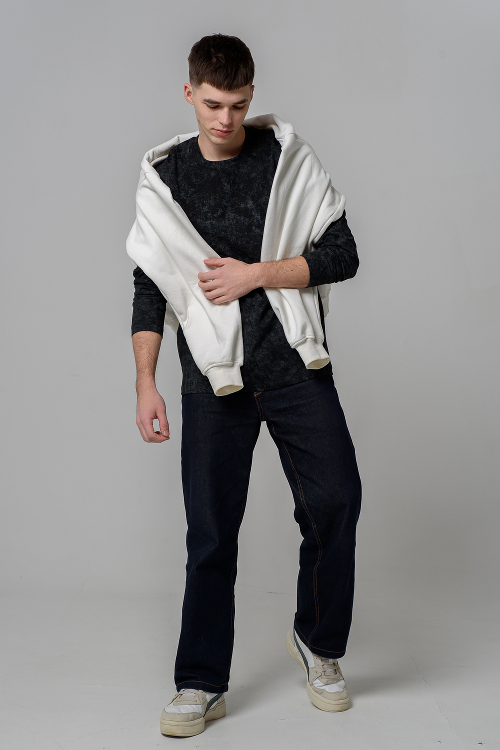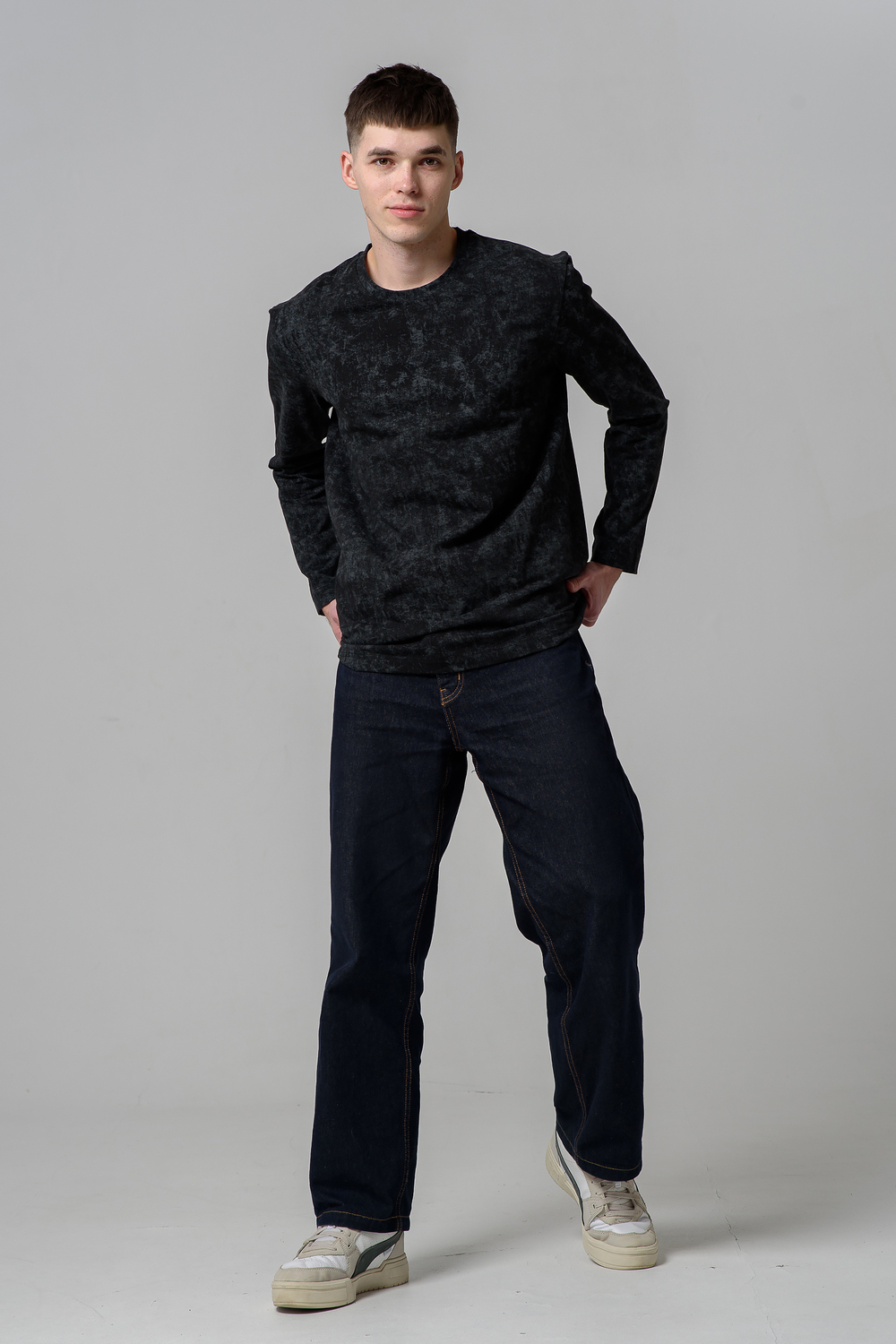 Мужской базовый лонгслив с эффектом варенки идеальный выбор для стильного и комфортного образа на каждый день. Модель выполнена из мягкого и приятного к телу хлопкового трикотажа, обеспечивающего свободу движений и отличную посадку. Лонгслив доступен в двух универсальных оттенках: графит и черный. Стильно смотрится как самостоятельно, так и в многослойных сочетаниях. Отличный вариант для прогулок, работы или отдыха.