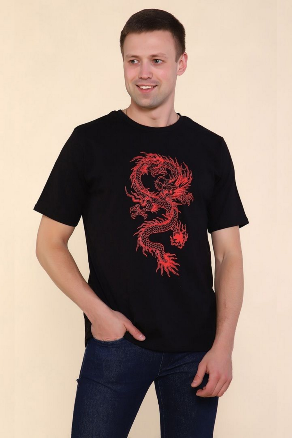 Мужские футболки из хлопка с принтами драконов в различных цветовых комбинациях и широким размерным рядом доступны для покупки.