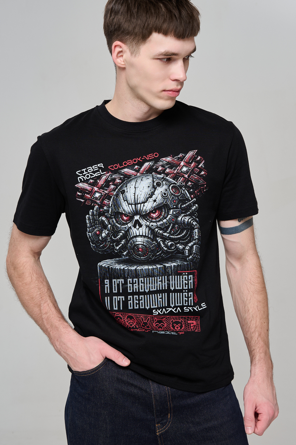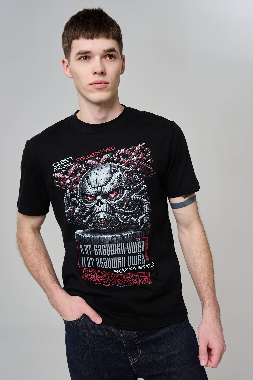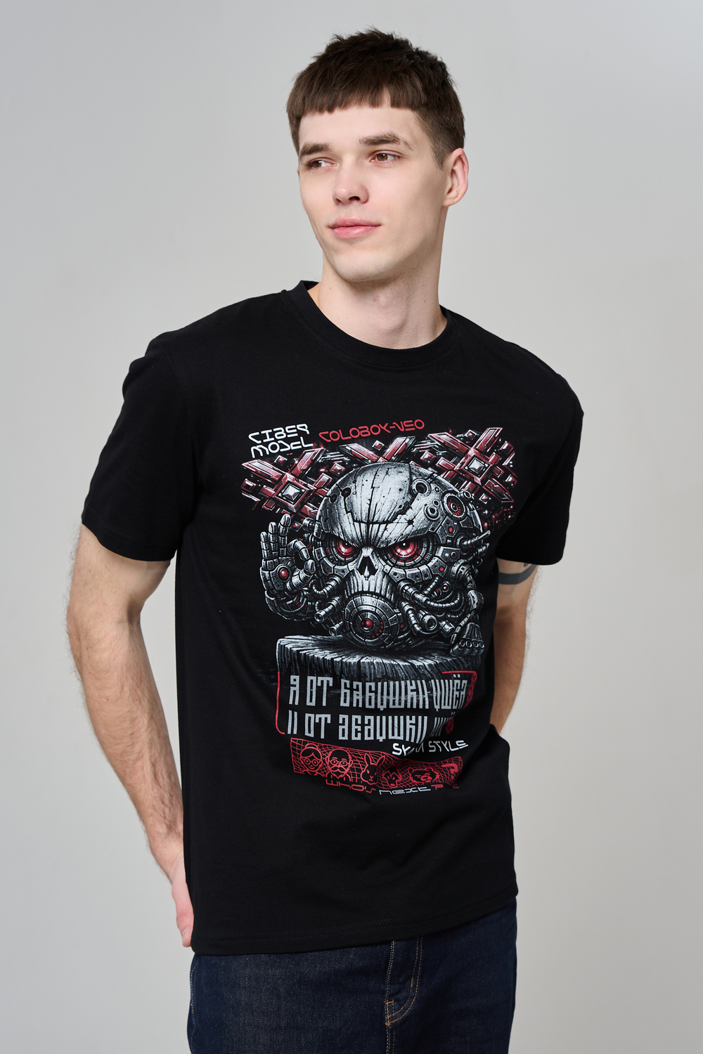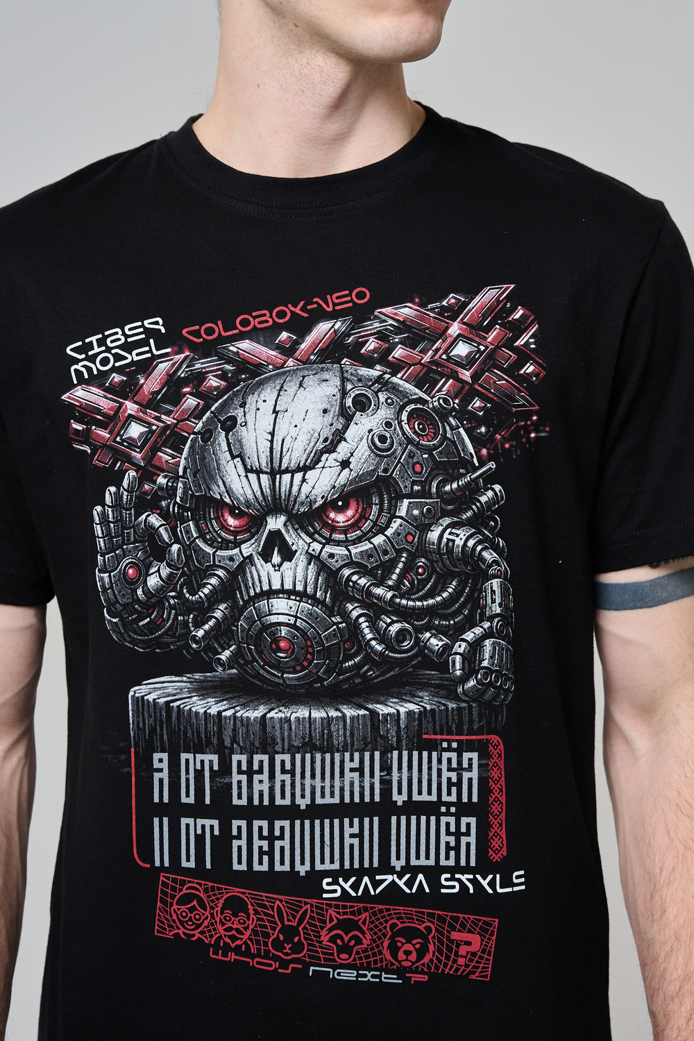 Погрузи свой стиль в атмосферу настоящей фантастики с этой уникальной футболкой! Брутальный принт в стиле киберпанк с механическим черепом и яркими деталями моментально привлечёт внимание и подчеркнёт твой характер. Высококачественный хлопок обеспечивает комфорт и долговечность, а эксклюзивный дизайн выделяет из толпы. Подчеркни свою индивидуальность, выбери футболку для тех, кто не боится быть в центре внимания!
