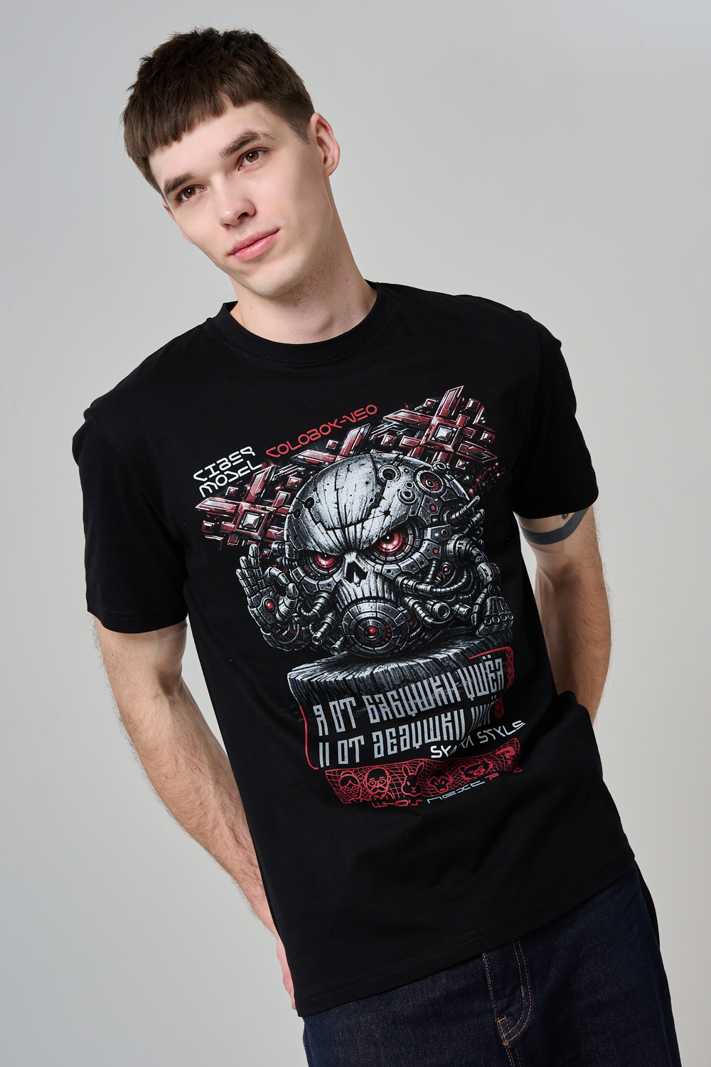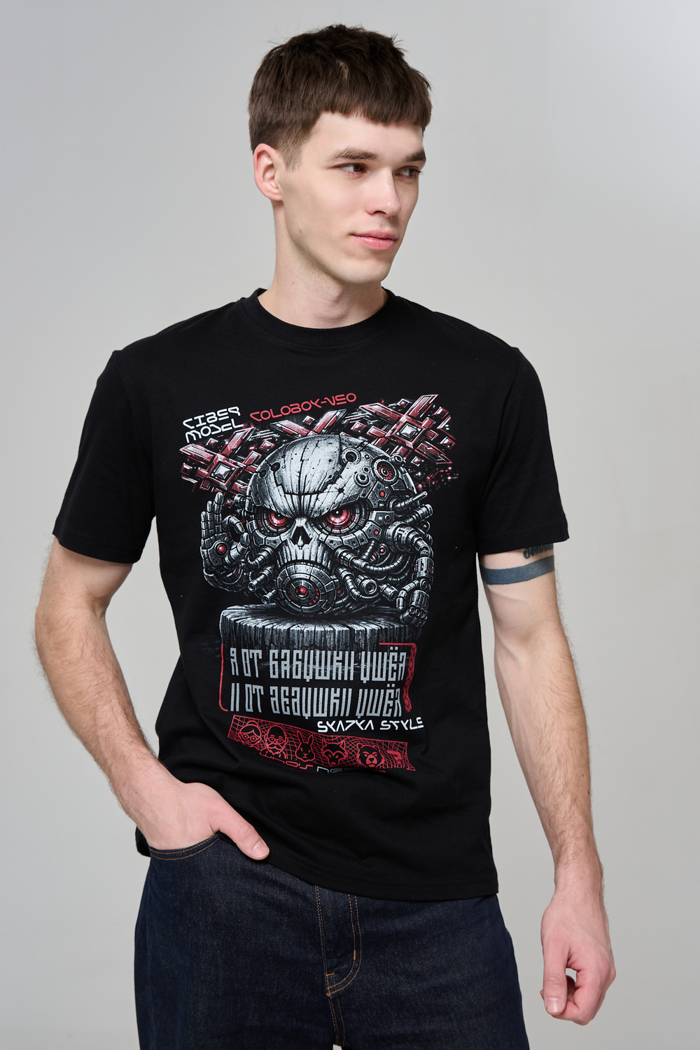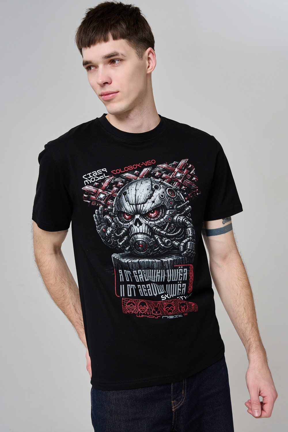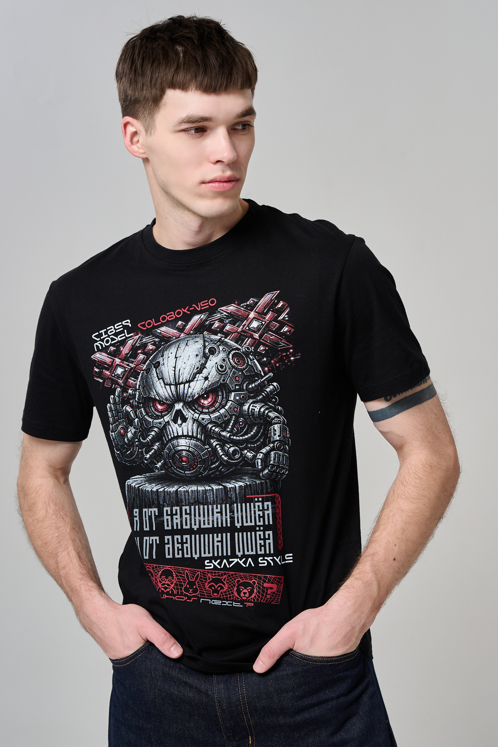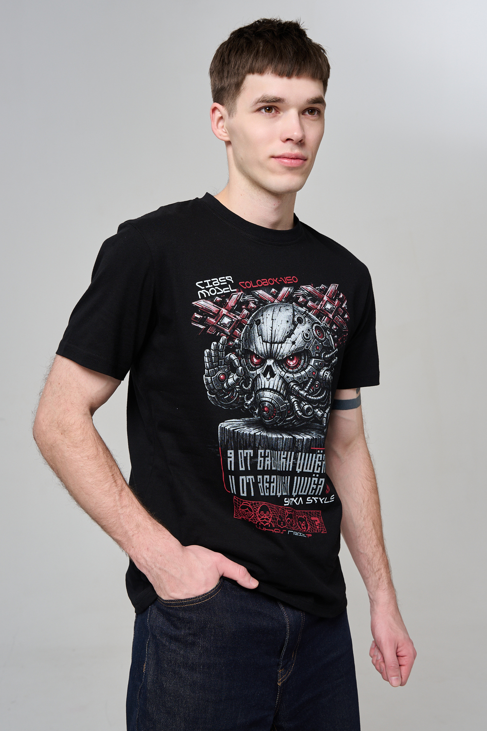 Погрузи свой стиль в атмосферу настоящей фантастики с этой уникальной футболкой! Брутальный принт в стиле киберпанк с механическим черепом и яркими деталями моментально привлечёт внимание и подчеркнёт твой характер. Высококачественный хлопок обеспечивает комфорт и долговечность, а эксклюзивный дизайн выделяет из толпы. Подчеркни свою индивидуальность, выбери футболку для тех, кто не боится быть в центре внимания!