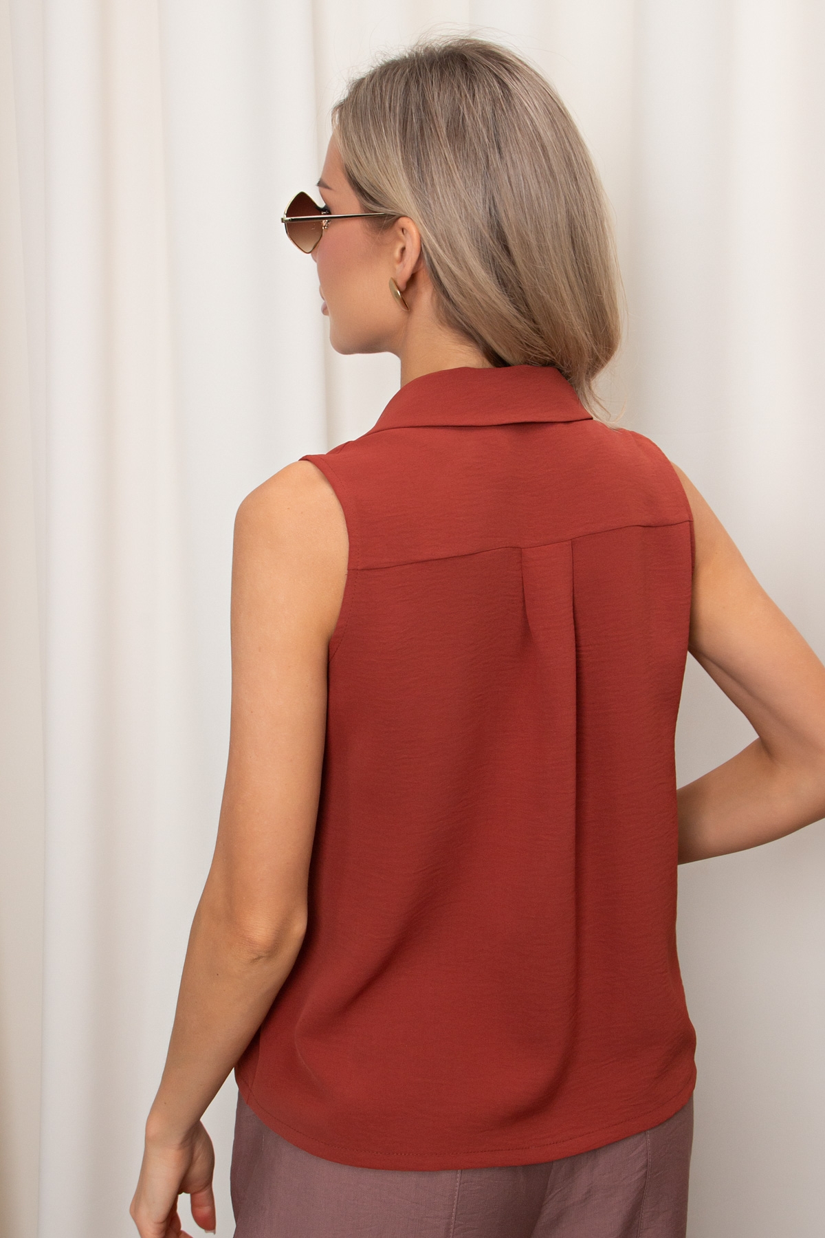 Летняя блузка прямого кроя выполнена из смесовой ткани с эффектом крэш (жатка). V- образная горловина оформлена отложным воротником. По переду застежка на петли и пуговицы .Низ ровный,без разрезов.