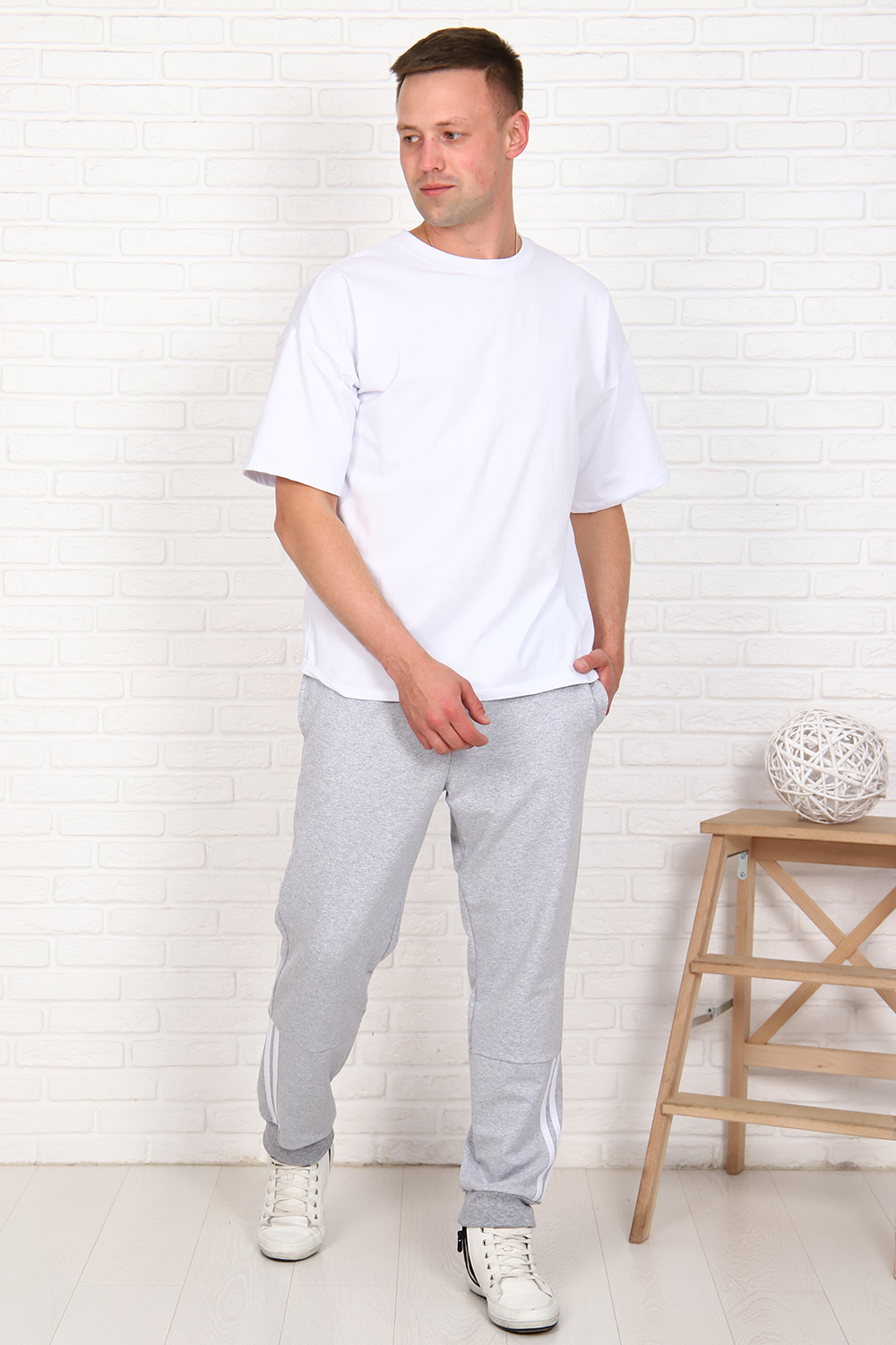 Молодежное мужское трико из футера. Пришивной пояс, внизу манжета из кашкорсе. Трико с карманами. По обеим сторонам лампасы.