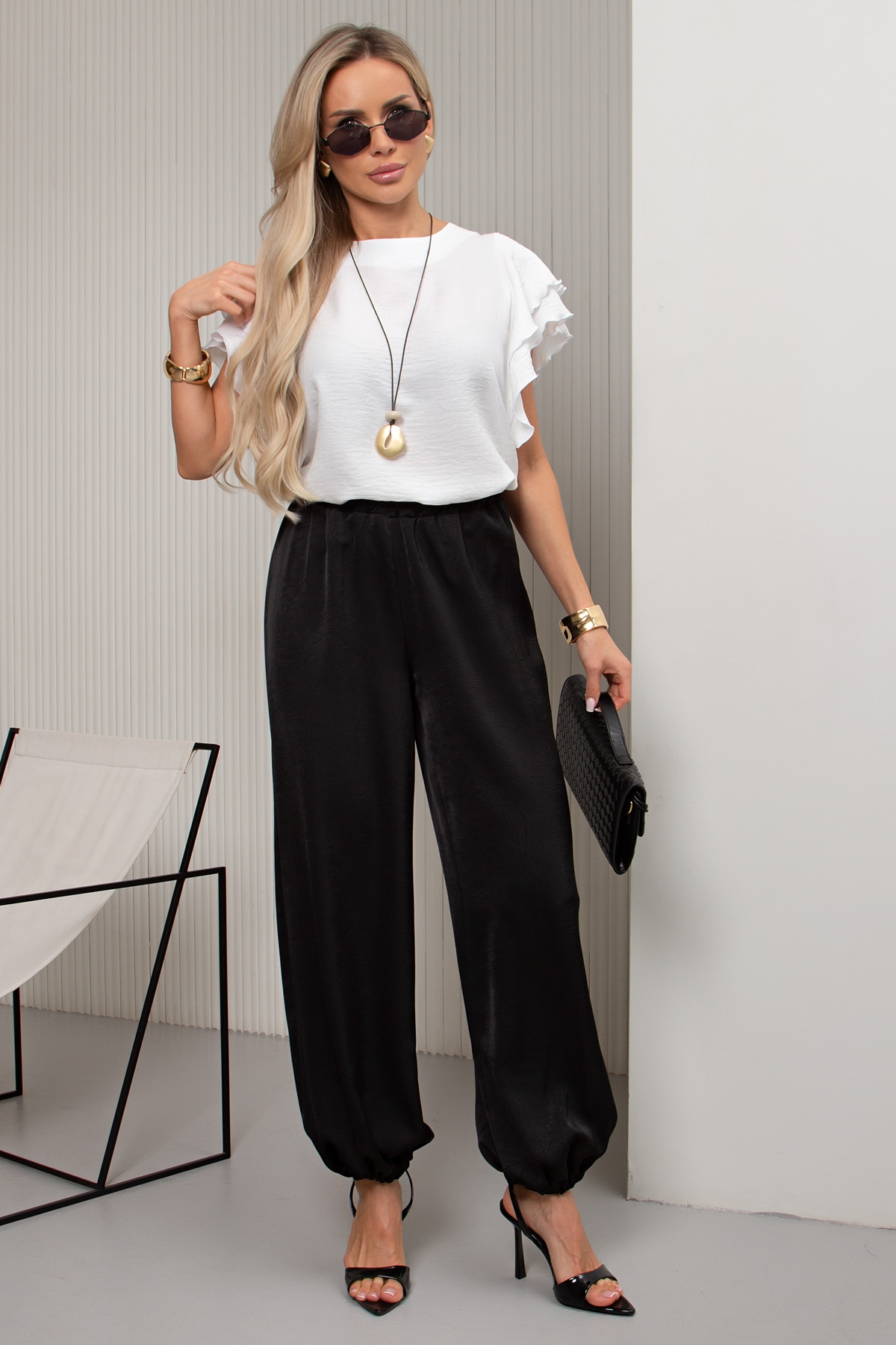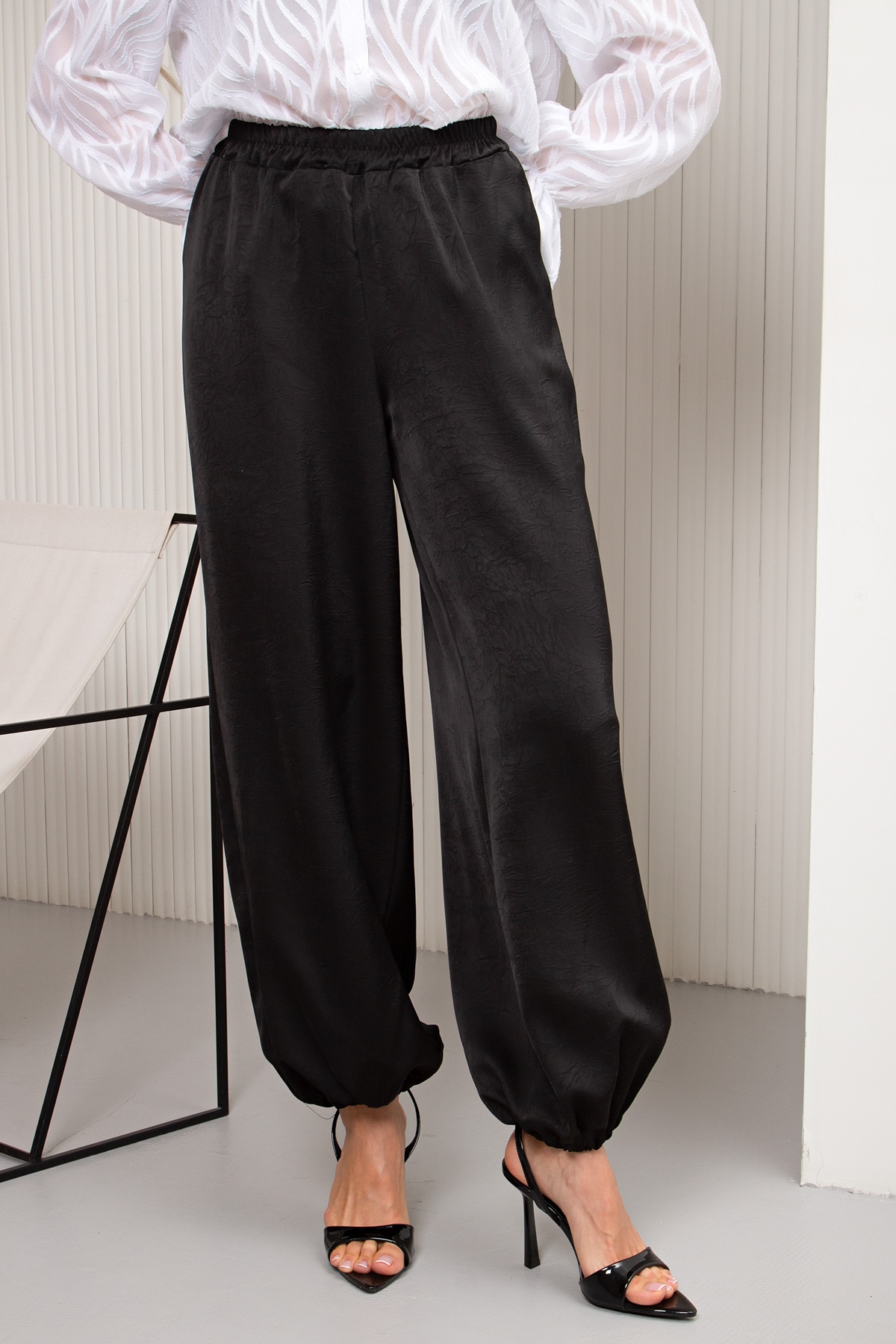 Летние брюки Алладины выполнены из атласа с эффектом крэш (жатка). Брюки свободного силуэта с комфортной посадкой по талии, которую обеспечивает притачной пояс на резинке. Низ на резинке. Рекомендуемая стирка при t не более 30°.