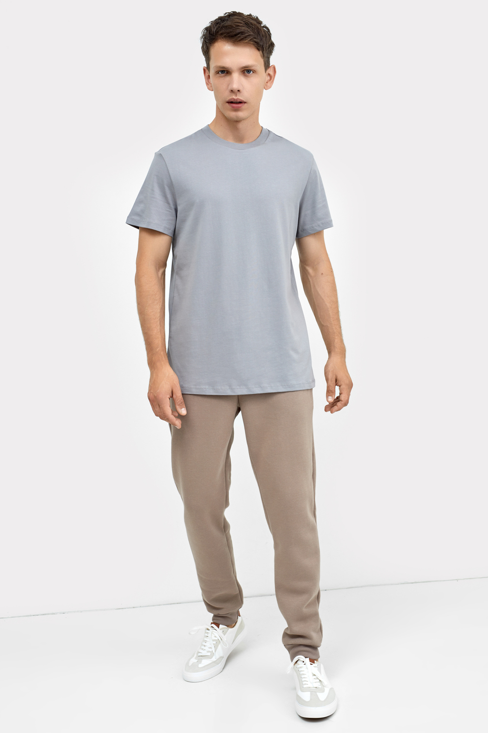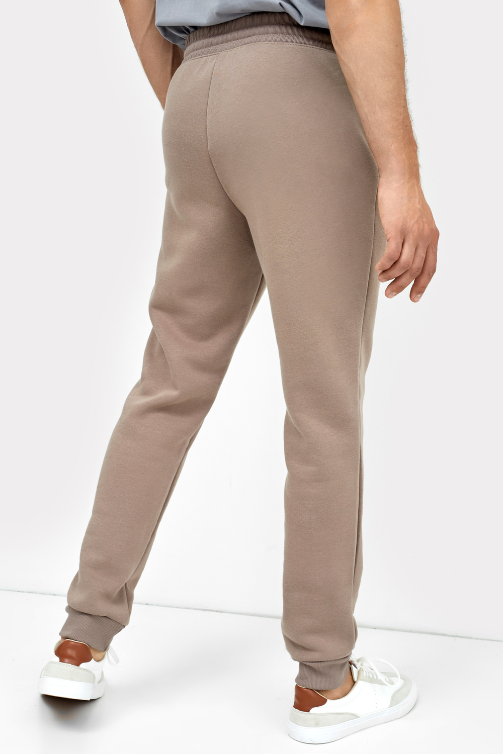 Стильные мужские брюки-джоггеры из трикотажного футера с теплым подчесом. Силуэт зауженный, штанины с манжетами. Есть удобные боковые карманы. В поясе эластичная тесьма и шнурок-затяжка. Просто, комфортно, актуально!