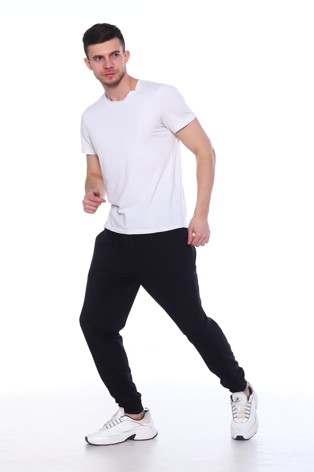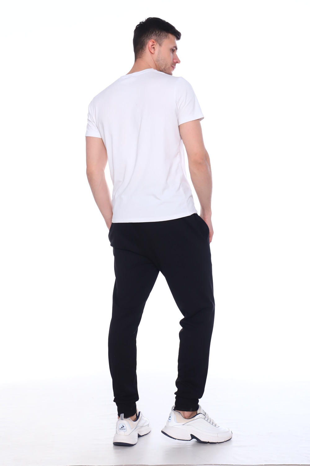 Брюки выполнены из высококачественного футера с лайкрой. Брюки на удобной резинке и регулируются шнурком. Низ брюк на манжетах.