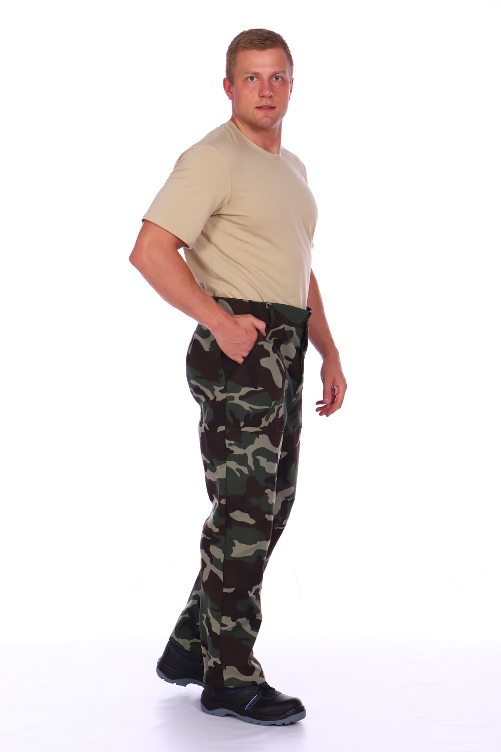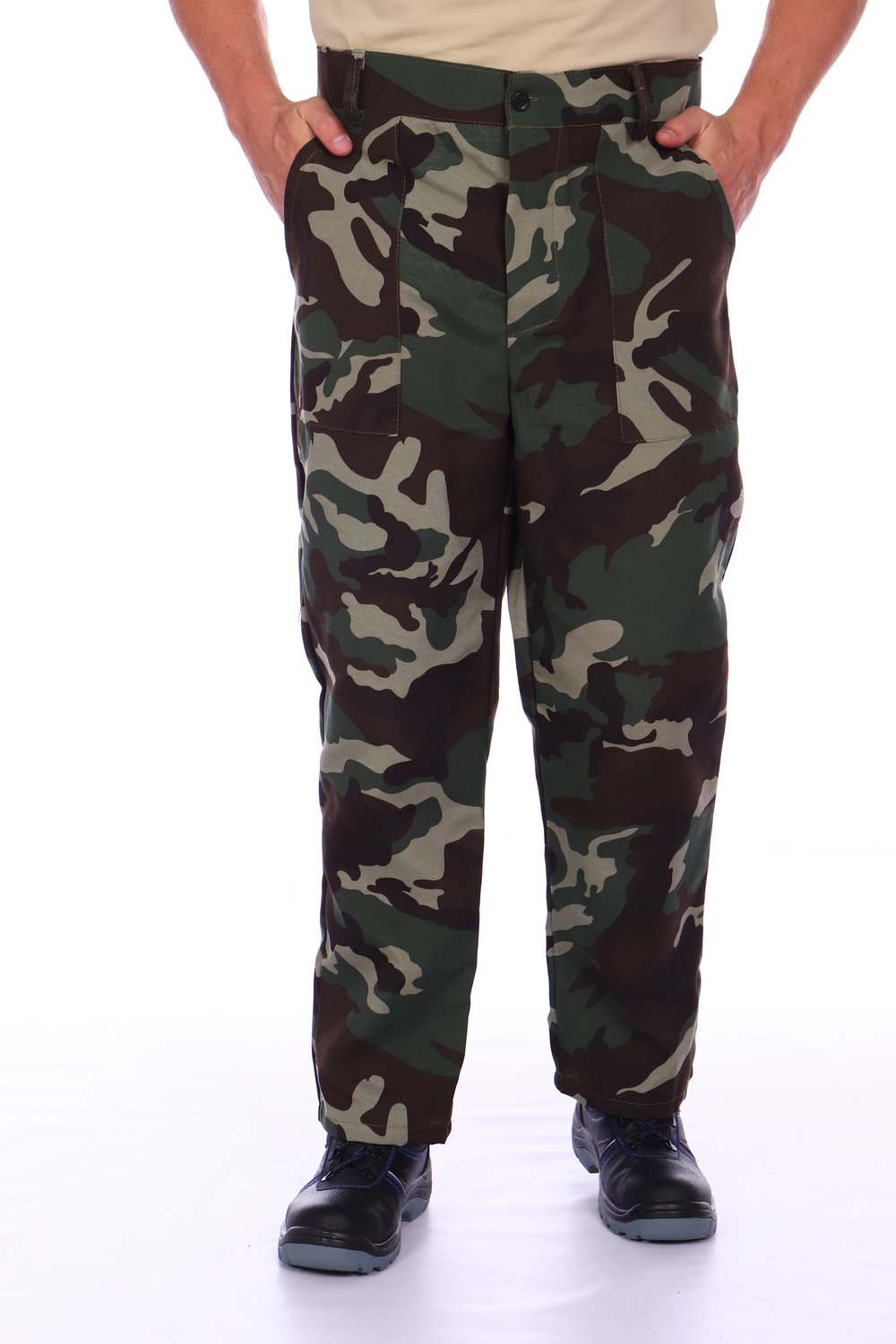 Камуфляжные брюки мужские от бренда СКЕЛА изготовлены из 20% натурального хлопка и 80% полиэстера. Брюки рабочие хорошо сидят, не сковывают движения. Модель изделия свободного кроя, подкладки и утеплителя нет. В пояс брюк мужских вшиты шлевки под рабочий ремень. Застегиваются штаны рабочие на петли и пуговицы. Имеются боковые накладные карманы. Штаны мужские представлены в цвете камуфляж, который имеет свой особый шарм. Представлен широкий размерный ряд, включающий большие размеры, что обеспечит вам свободу выбора.