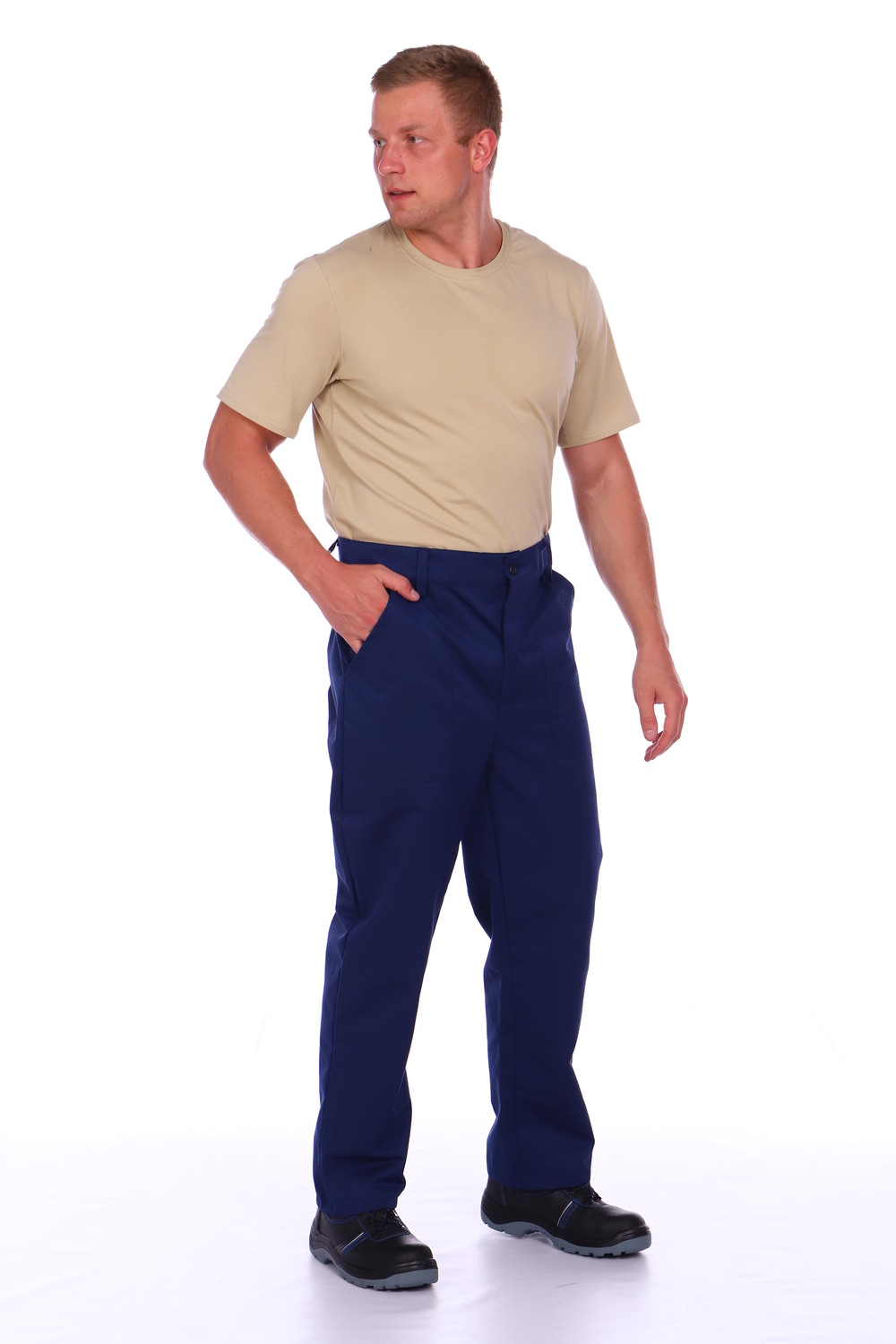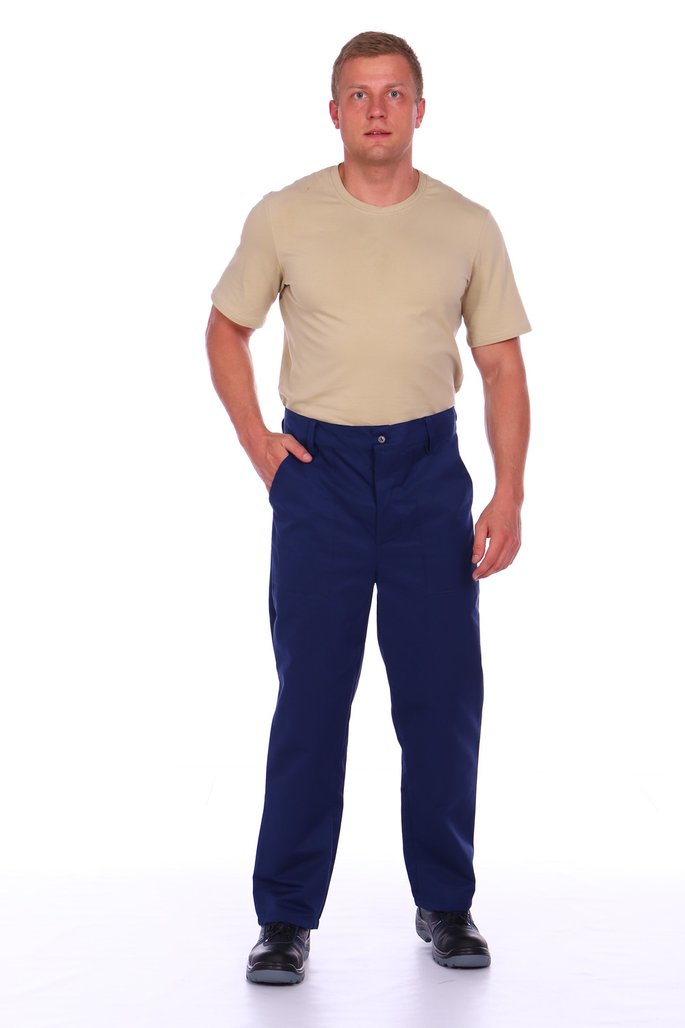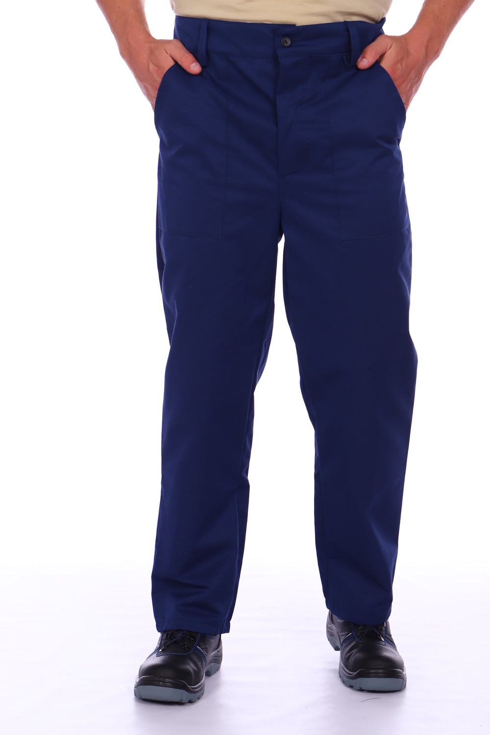Брюки рабочие мужские от бренда СКЕЛА изготовлены из 47% натурального хлопка и 53% полиэстера плотностью 215 гр/м2. Брюки хорошо сидят, не сковывают движения. Модель изделия свободного кроя, подкладки и утеплителя нет. В пояс брюк мужских вшиты шлевки под рабочий ремень. Застегиваются штаны рабочие на петли и пуговицы. Имеются боковые накладные карманы. Штаны мужские представлены в темно-синем цвете - нейтральный и немаркий. Представлен широкий размерный ряд, включающий большие размеры, что обеспечит вам свободу выбора.