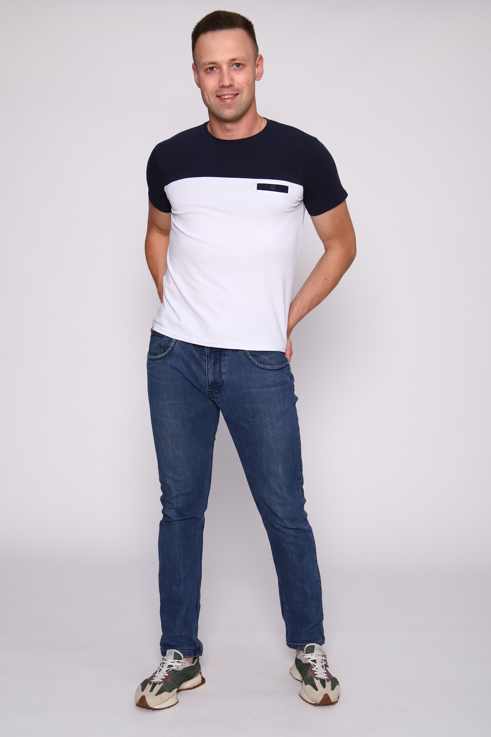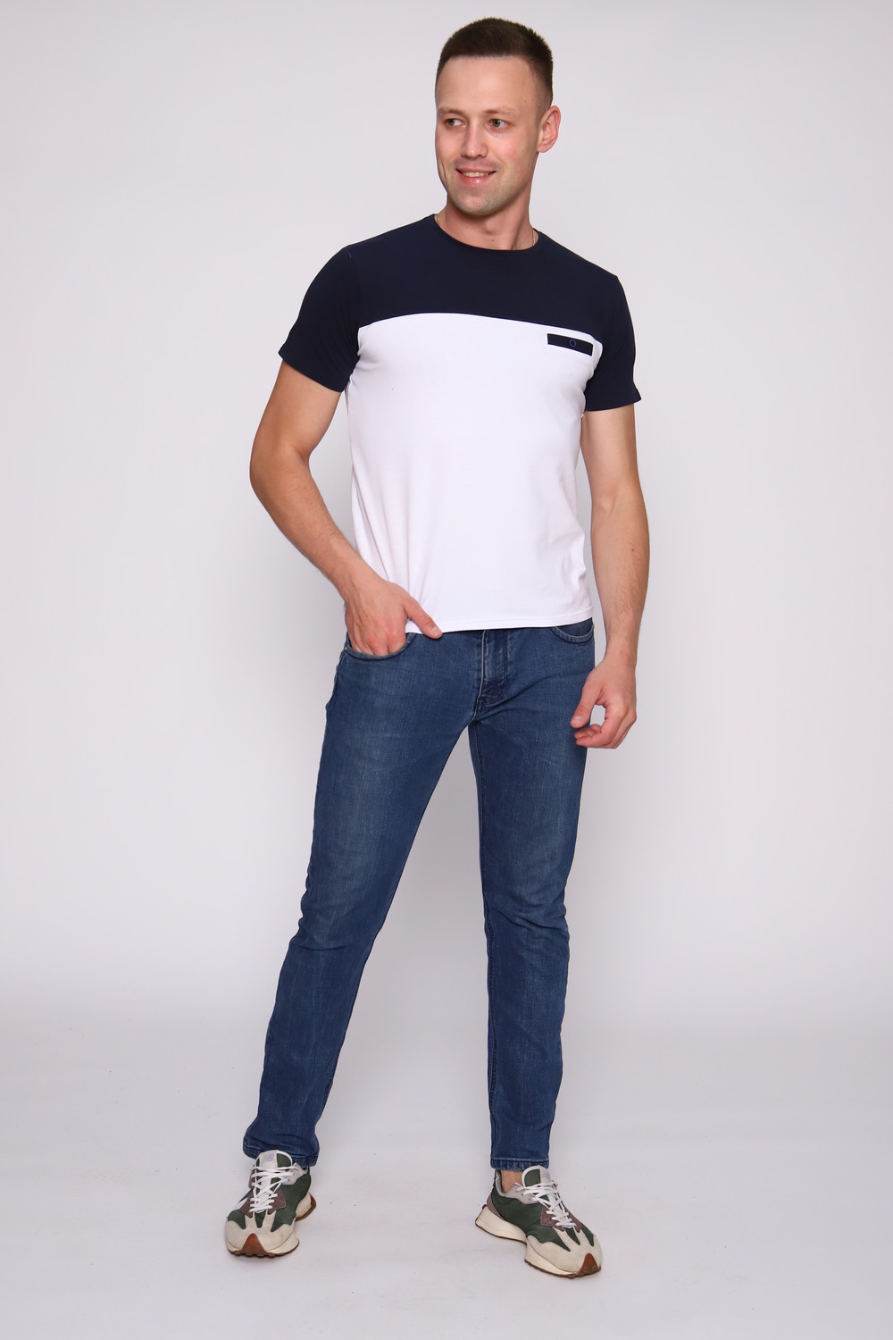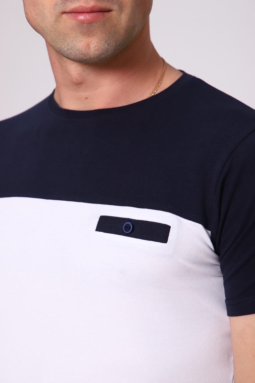 Стильная футболка с круглым воротником из тонкой износостойкой ткани кулирка с лайкрой - идеальный вариант для жаркой погоды. Стильная модель с карманом-обманкой. Простая базовая футболка придает стиль с помощью двух цветовых блоков. Приятный к телу трикотаж не скатывается и не даёт усадку.