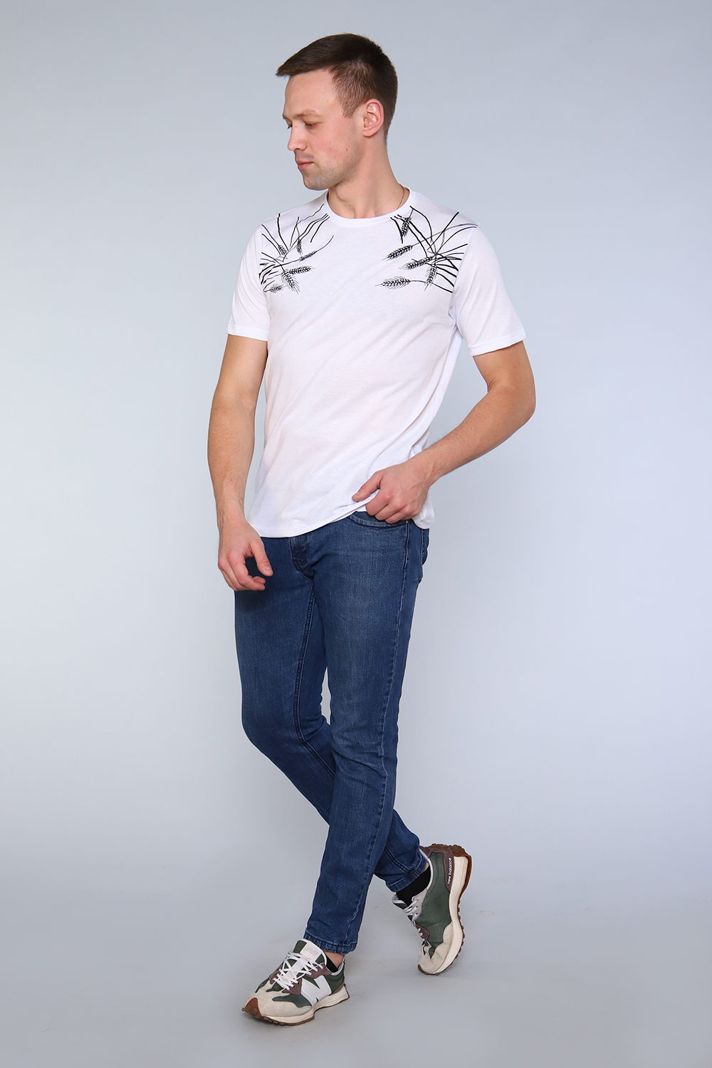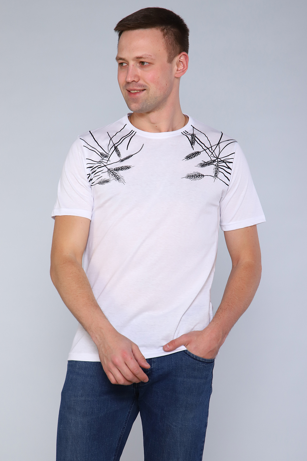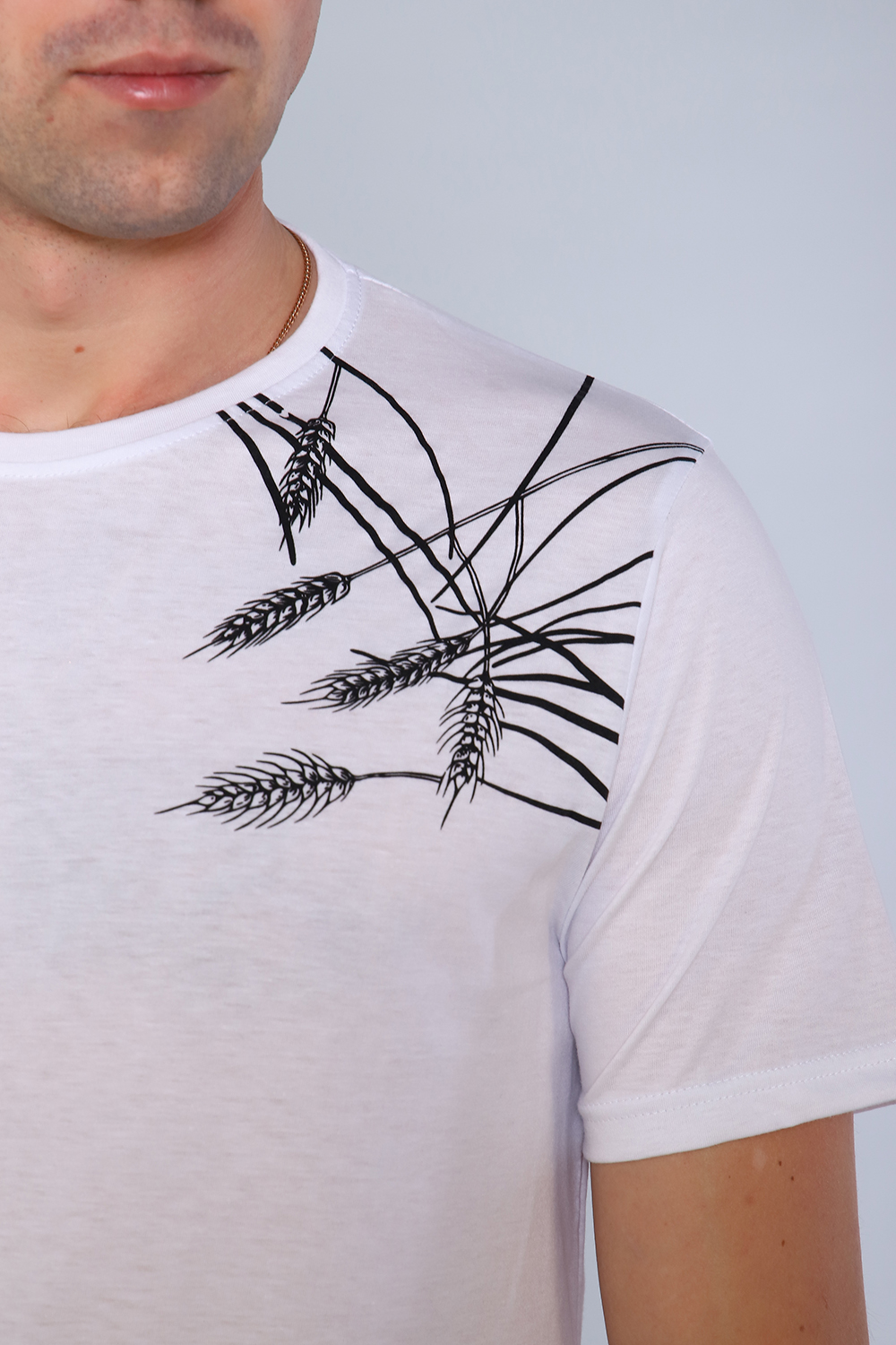 Футболка прямого кроя с печатью колоски. Стильная свободная футболка в ярких цветах. Быстрый темп жизни делает футболку незаменимым элементом ежедневного гардероба огромного количества людей. Именно поэтому дизайнерский принт на футболке - это единственно правильное решение, когда хочется подчеркнуть свою индивидуальность, вкус и личный стиль, обратить на себя внимание.