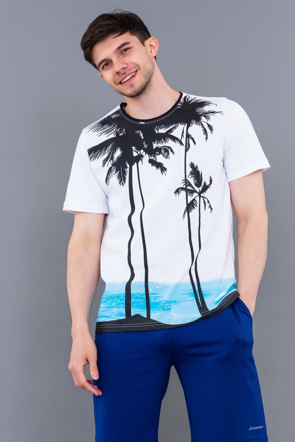 Хлопковая мужская футболка с коротким рукавом. Данная модель выполнена из трикотажного полотна кулирка (хлопок 100%). Горловина обработана кантом, с усиливающей строчкой. На полочке присутствует принт. Отлично подойдет для повседневной носки и отпуска.
