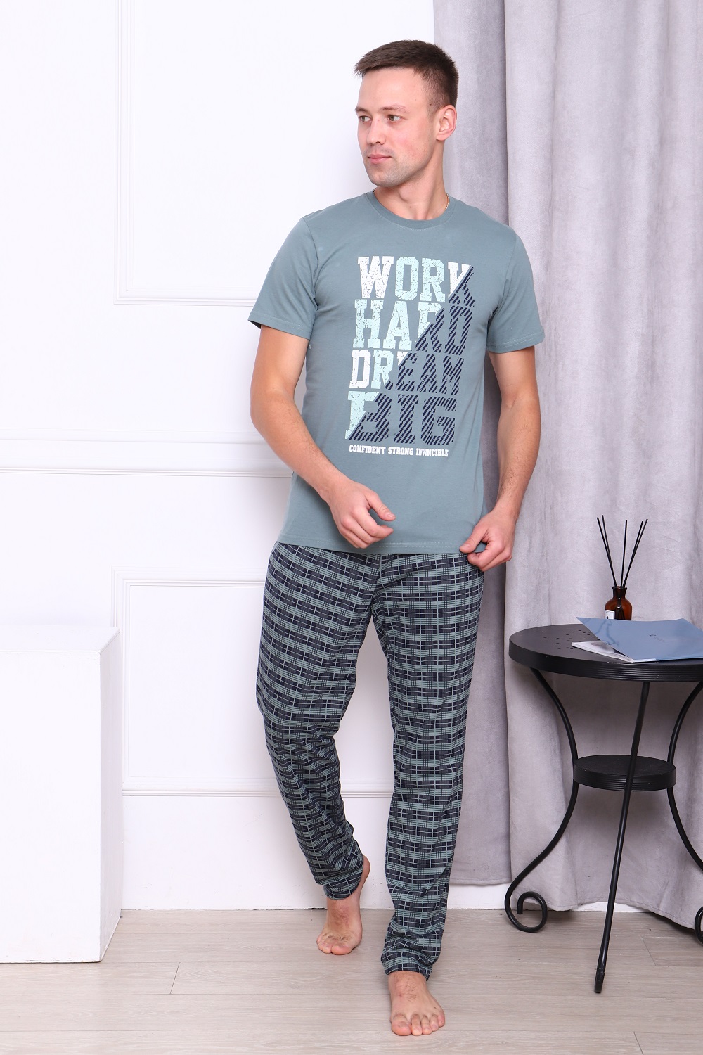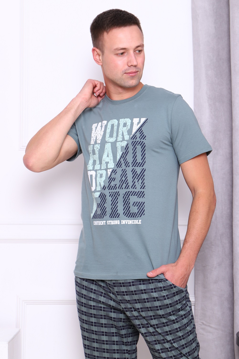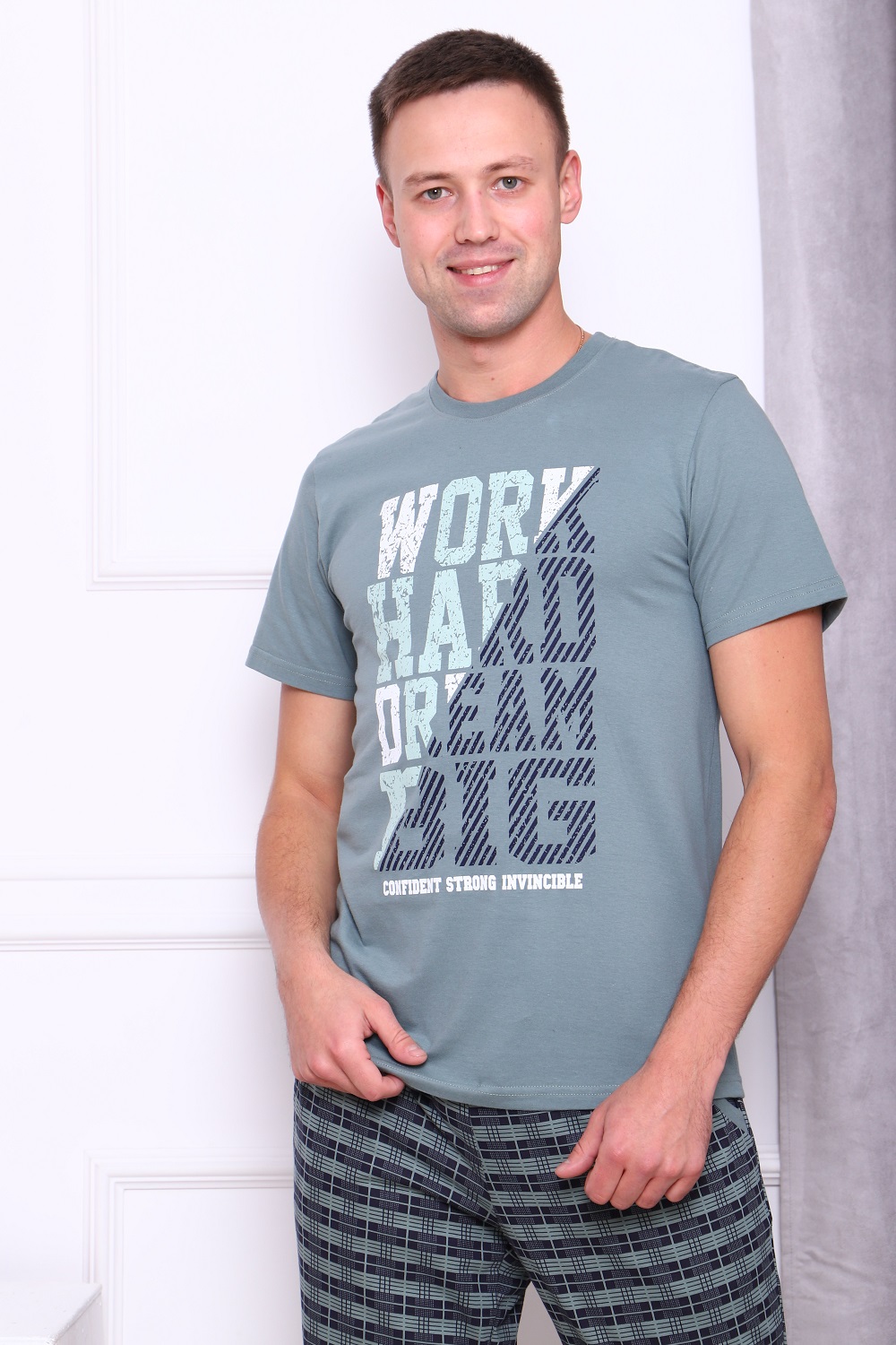 Футболка мужская с принтом на груди и короткими рукавами.