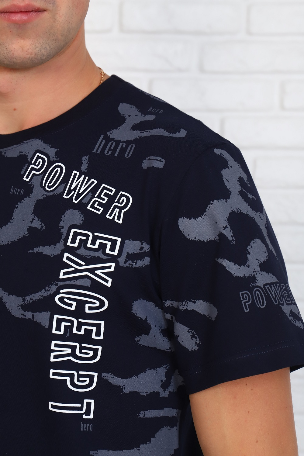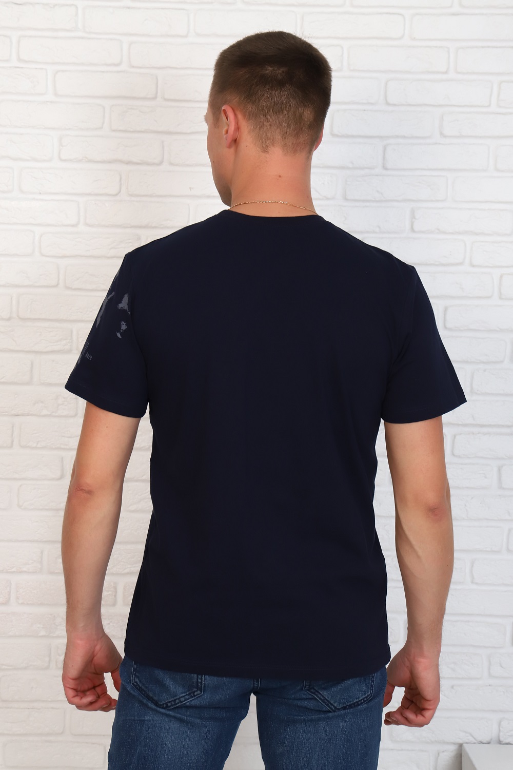 Футболка мужская с короткими рукавами и брутальным принтом на левой части полочки. Комфортная и стильная, хлопок 100%.