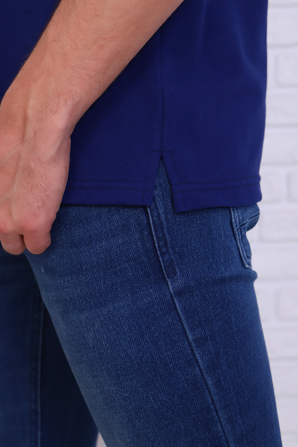 Футболка поло мужская из ткани лакост пенье 100% хлопок насыщенного синего цвета. Воротник вязаный в цвет футболки, отделка на рукаве и планка яркого контрастного цвета, по бокам разрезы. Планка застегивается на 3 пуговицы. Футболка удобная и комфортная, подойдет для повседневной носки, прогулок и отдыха, после стирки сохраняет цвет и форму.