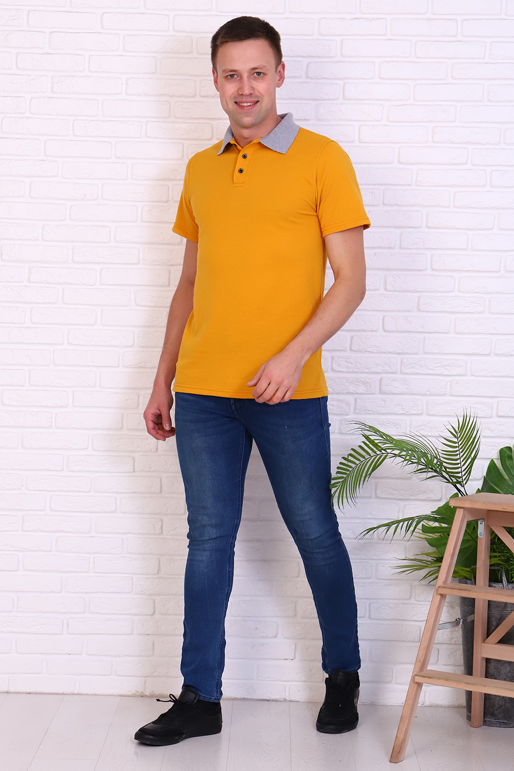 Футболка поло мужская из ткани лакост пенье 100% хлопок. Воротник на футболке вязаный, светло-серого цвета, планка на 3 пуговицы из основной ткани, рукав под подшивку. Футболка удобная и комфортная, подойдет для повседневной носки, прогулок и отдыха, после стирки сохраняет цвет и форму.