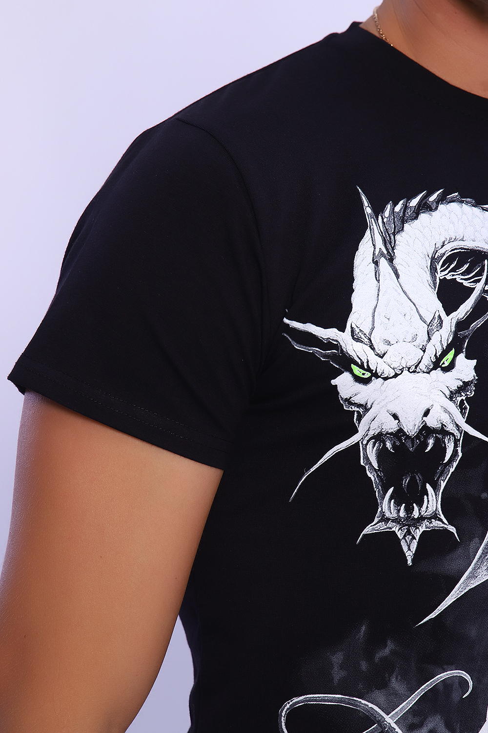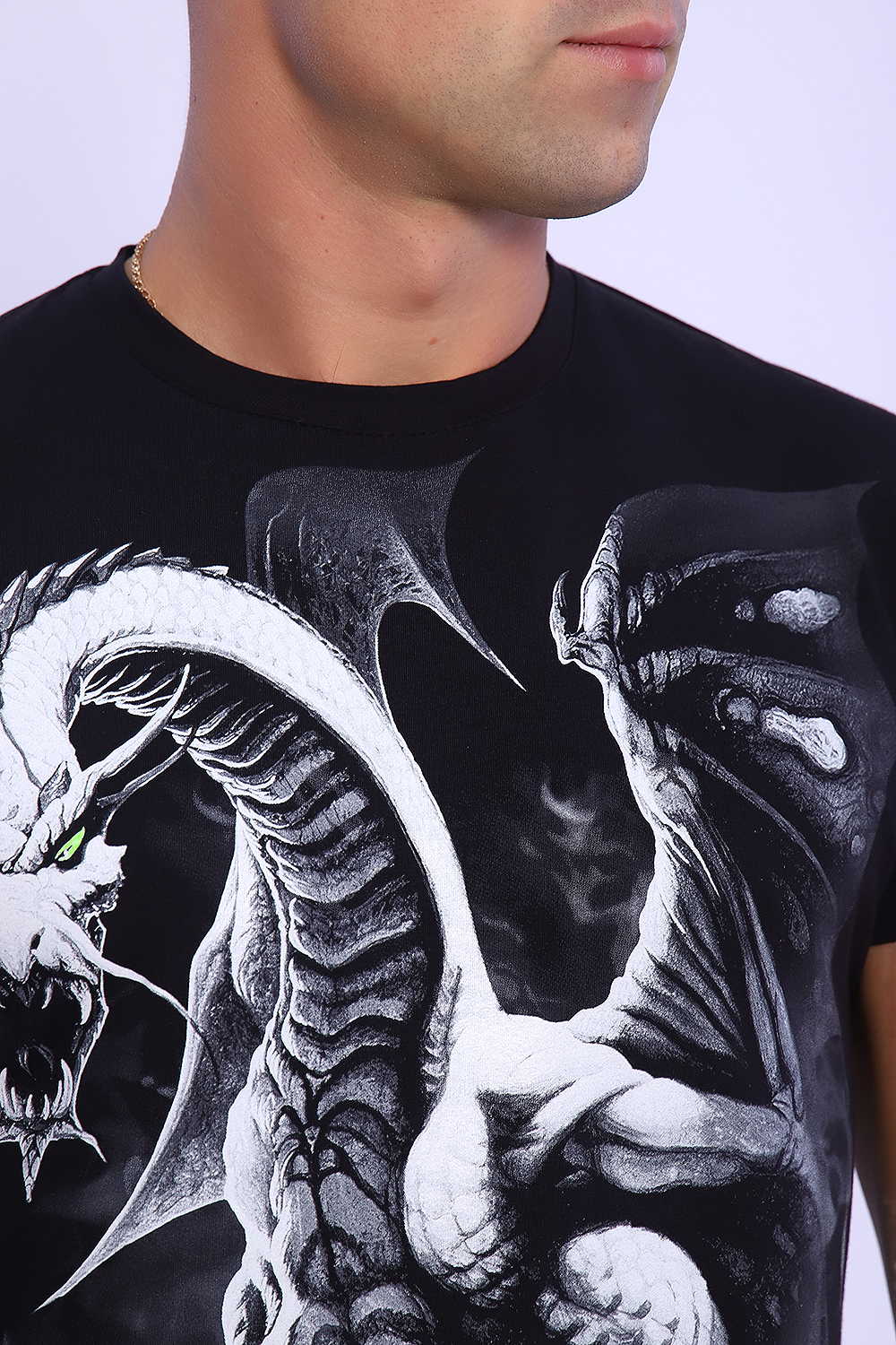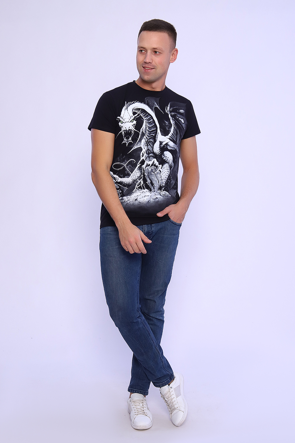 Футболка мужская с оригинальным принтом - дракон символ 2024 года, из качественной кулирки с лайкрой пенье. Базовая футболка с круглой горловиной, коротким втачным рукавом необходимая вещь в мужском гардеробе. Стильный принт, отличный подарок на новый год, футболка для настоящих мужчин.