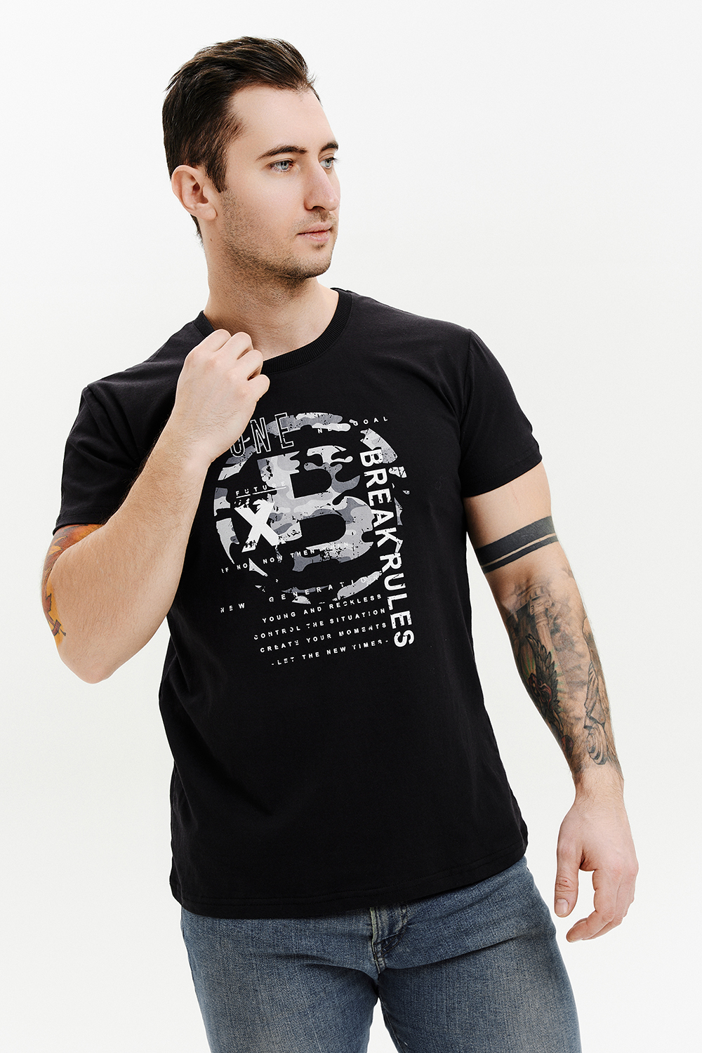 Футболка прямая, свободная, средней длины, с округлой горловиной. Рукав короткий. Горловина обработана эластичной обтачкой.