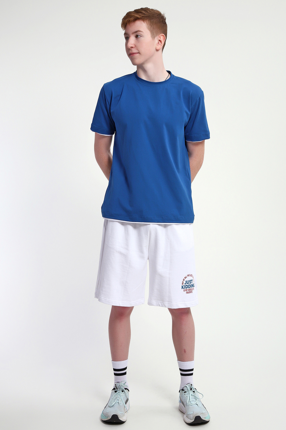 Футболка мужская выполнена из кулирки с лайкрой качества пенье с коротким рукавом. Горловина обработана обтачкой из основной ткани и х/б киперной лентой контрастного белого цвета. Низ рукавов и изделия отделаны белым кантом из рибаны. Футболка имеет комфортную посадку, отлично подойдет как для дома, так и для прогулок и спорта.