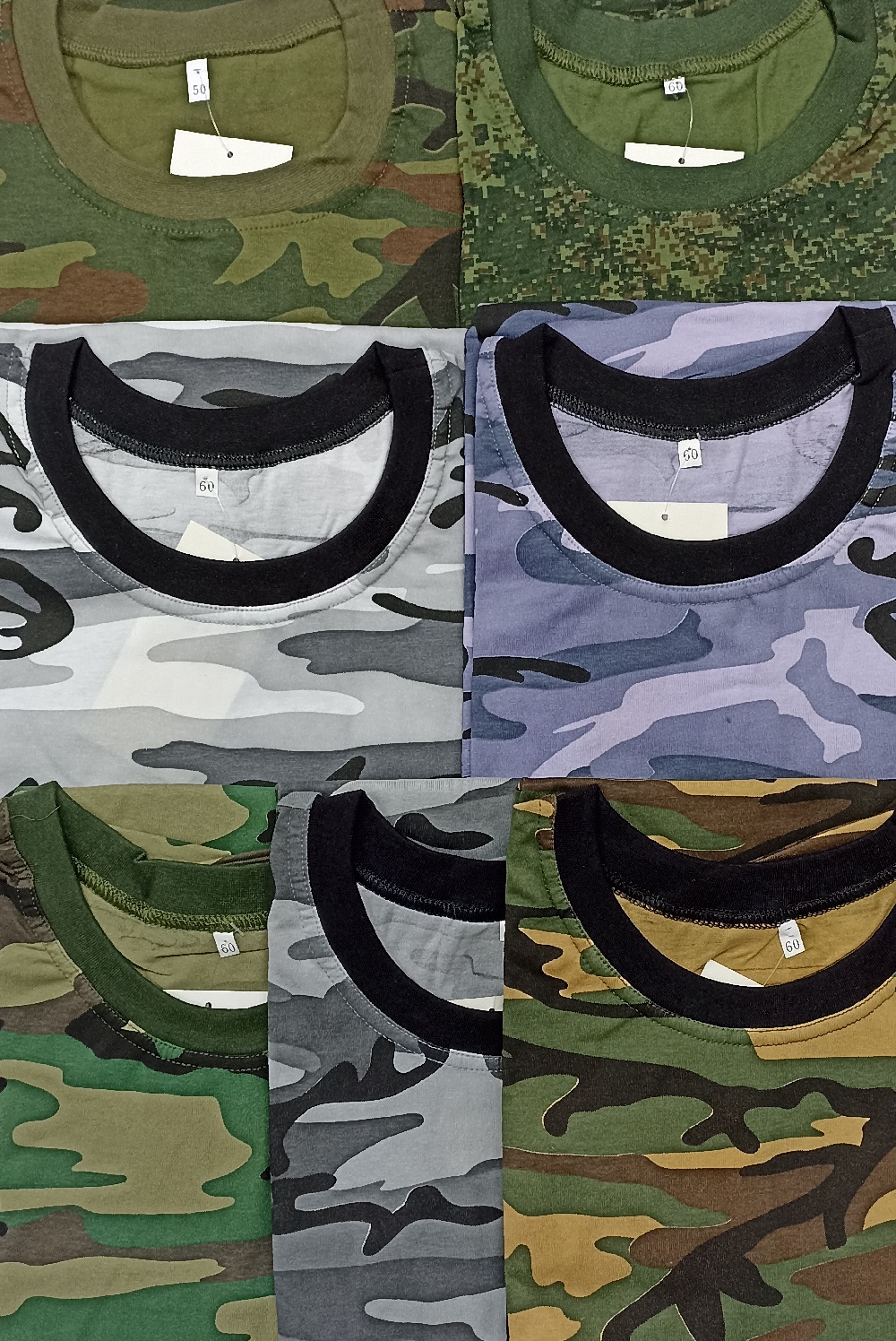 Футболка мужская с коротким рукавом, разноцветная (маскировочный рисунок), 100% хлопок. В двух цетах: зелёном и сером (разных оттенков и рисунков согласно фото).