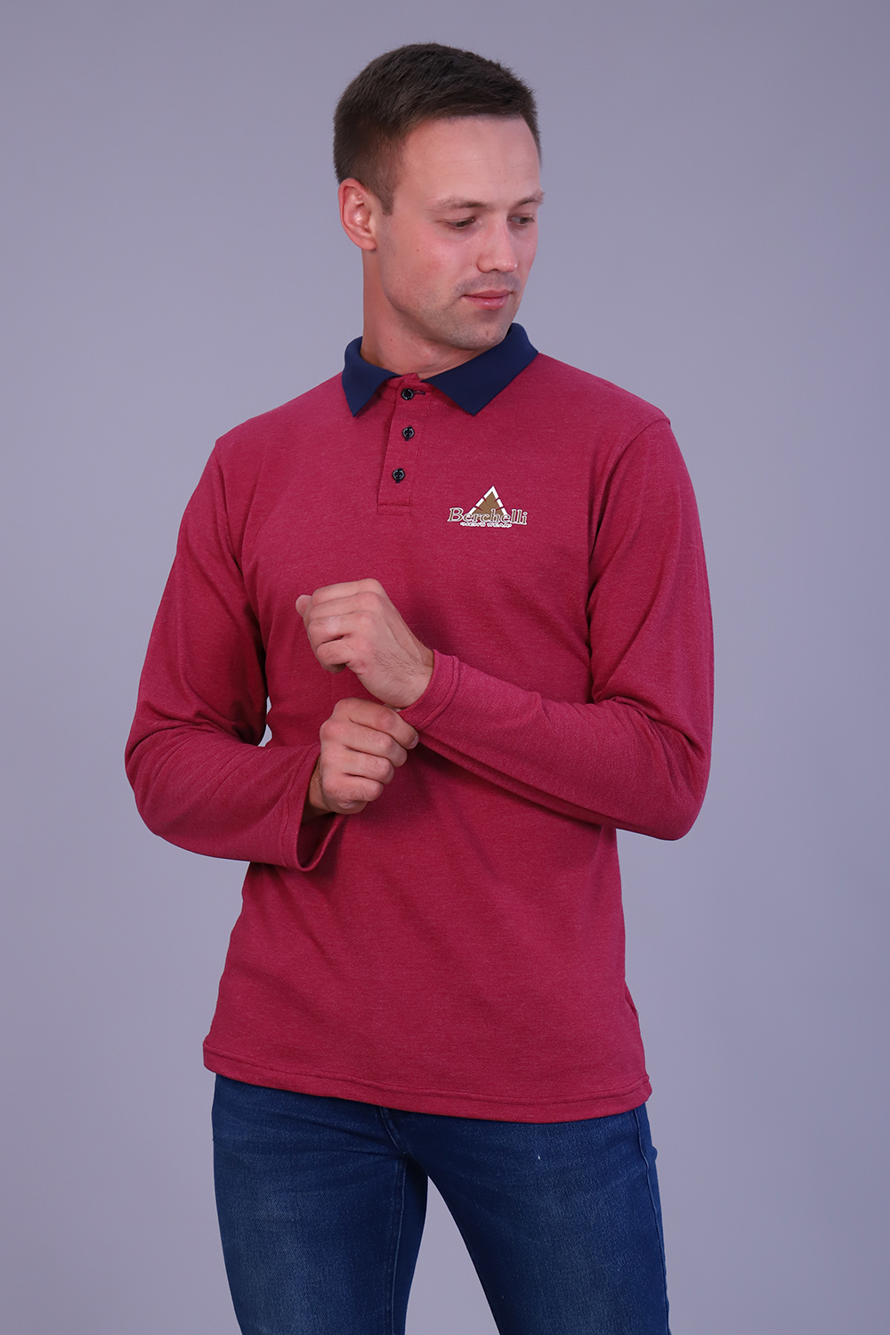 Футболка поло с длинным рукавом, выполнена из ткани лакост пике 50% хлопок, 50% полиэстер. Воротник вязаный приглушенного синего цвета. На полочке планка на трех пуговицах, внутренняя планка в цвет воротника, также на полочке выполнена печать. Футболка поло подойдет для прогулок, отдыха, дома и спорта.