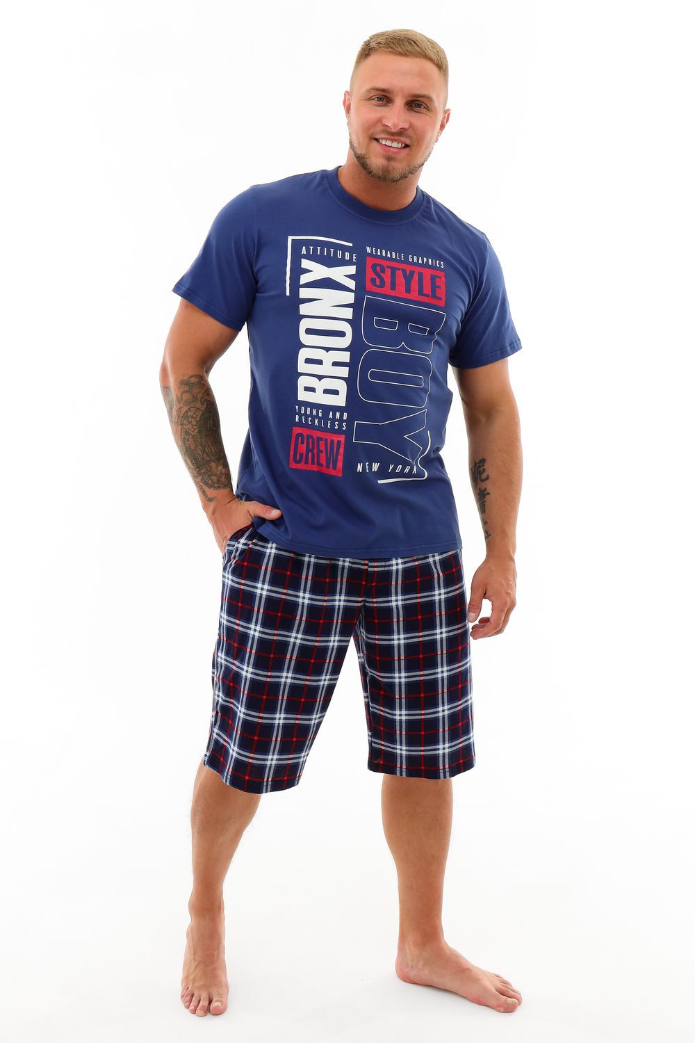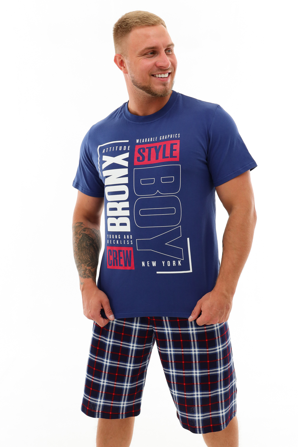 Мужской костюм выполнен из натуральной ткани 100% хлопка. Модель для повседневной, домашней носки, состоящая из шорт и легкой, свободной футболки, с коротким рукавом. Комплект костюма состоит из широкого размерного ряда, шорты имеют 2 боковых кармана, также эластичный пояс. Наш костюм выполнен так, что при носке он не будет сковывать Ваши движения, а только дарить наслаждение.