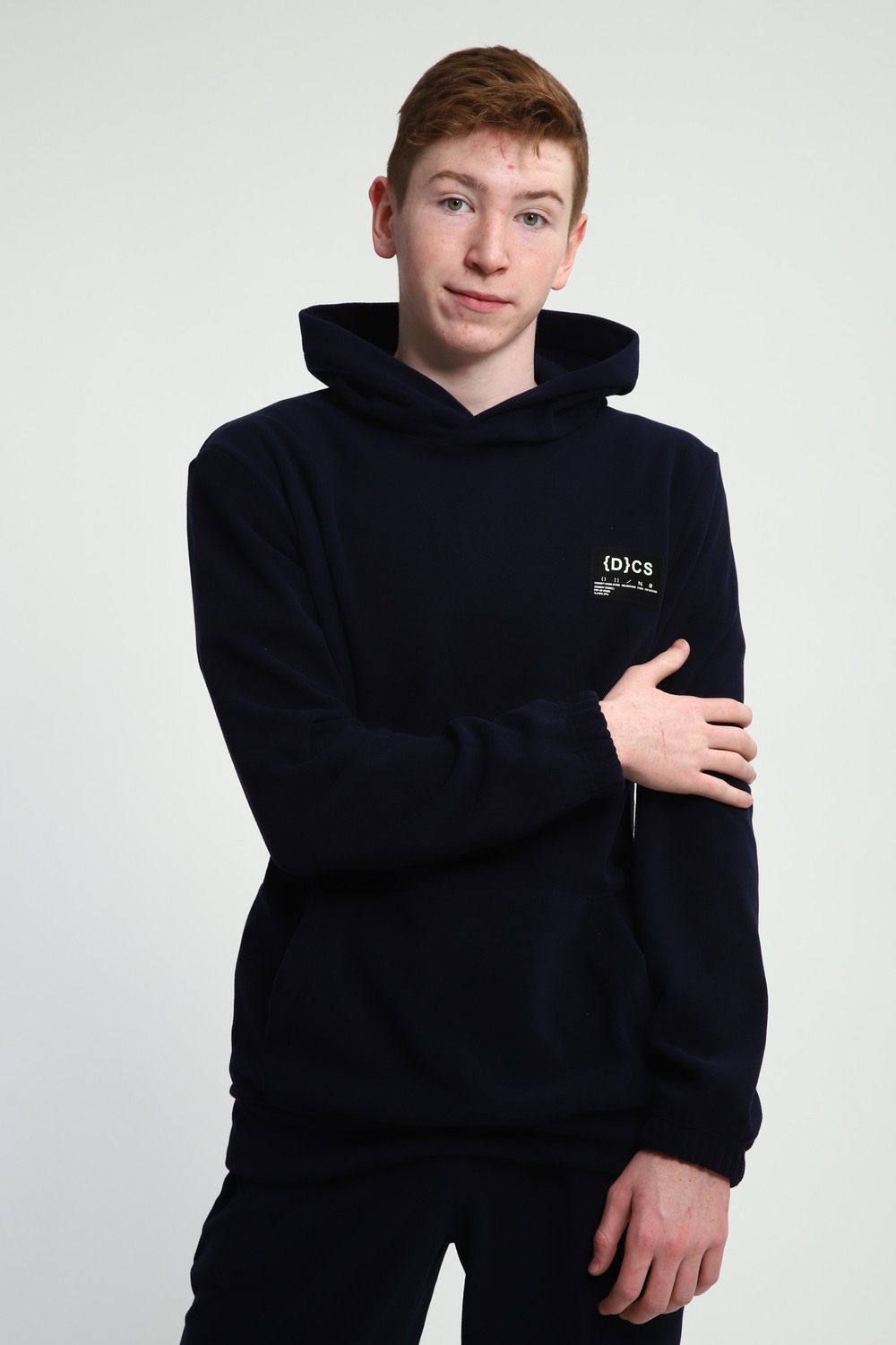 Костюм мужской из флиса состоит из брюк и толстовки с капюшоном. На кофте и брюках имеется нашивка, брюки с карманами в боках и сзади 1 накладной карман, толстовка с карманом-кенгуру. Костюм идеально подойдет на прохладную погоду.
