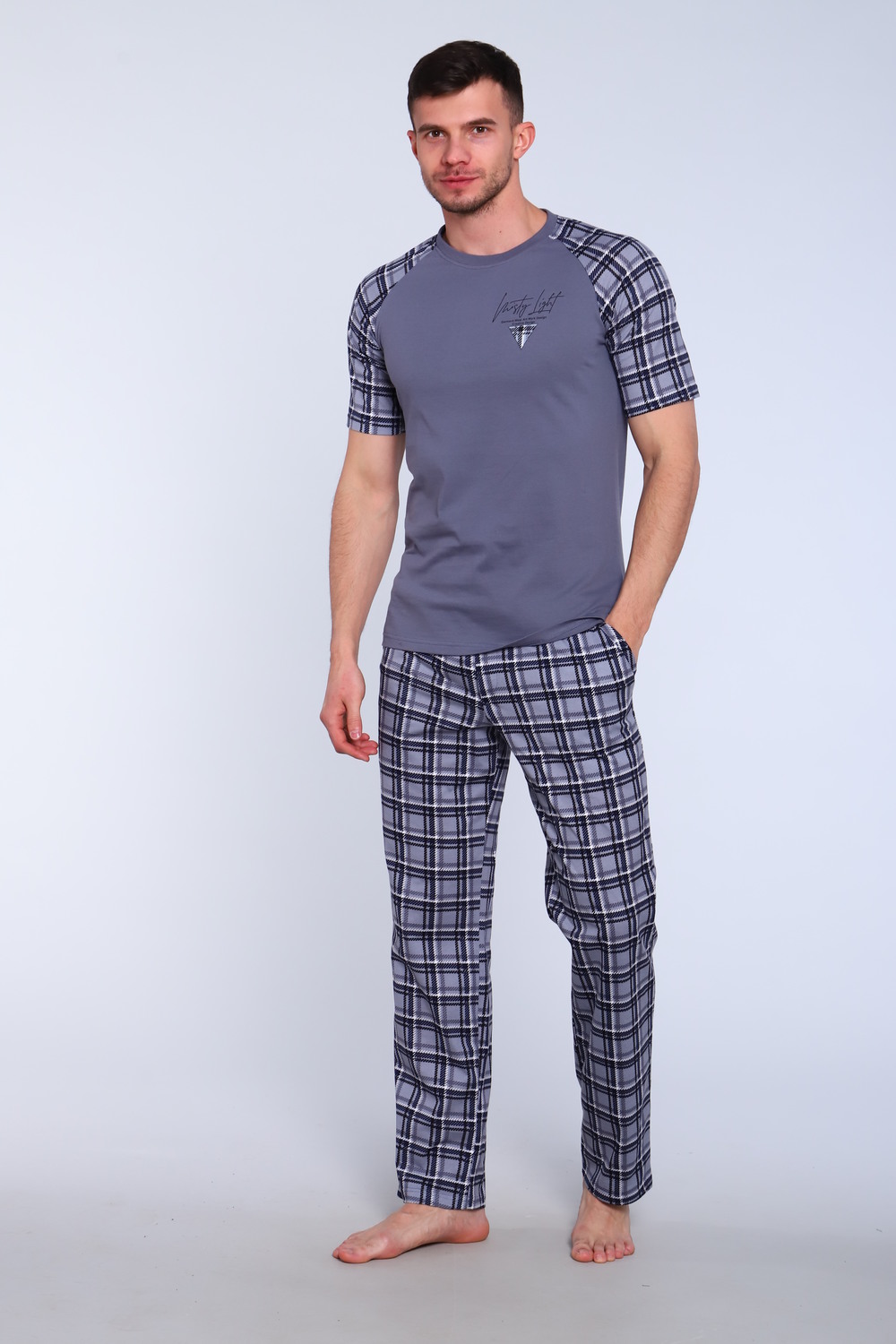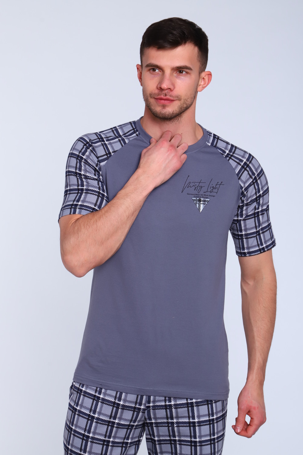 Домашний костюм мужской: футболка и штаны, отличный вариант как одежда для дома и сна. Выполнен в свободном крое, поэтому он не сковывает движения. На выбор представлена модель в больших и маленьких размерах. Футболка прямого кроя с коротким рукавом реглан и округлым вырезом, штаны с боковыми карманами. Мужская пижама с коротким рукавом - это отличный подарок для мужчины на Новый Год, 23 февраля, День Рождения. В этом костюме ваш мужчина будет чувствовать себя комфортно и уютно.