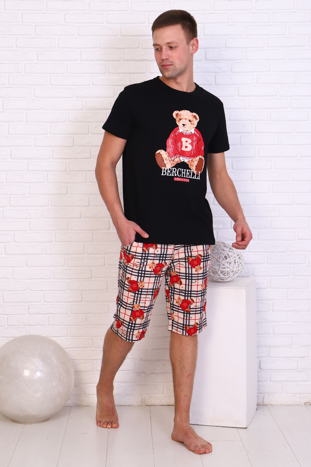Мужская пижама является идеальным вариантом для сна и отдыха, а также прекрасной подойдет в виде домашней одежды. Домашний мужской костюм приятен к телу, а благодаря прямому и свободному крою не сковывает движения. Пижама мужская с шортами и футболкой прямого силуэта. Выполнена из 100% хлопка.