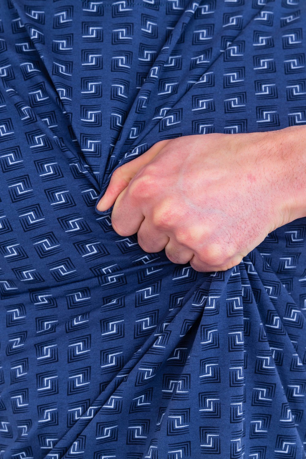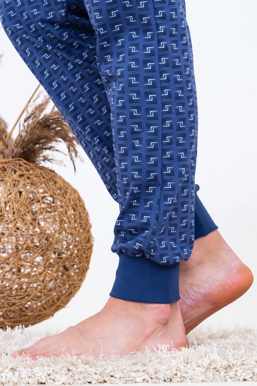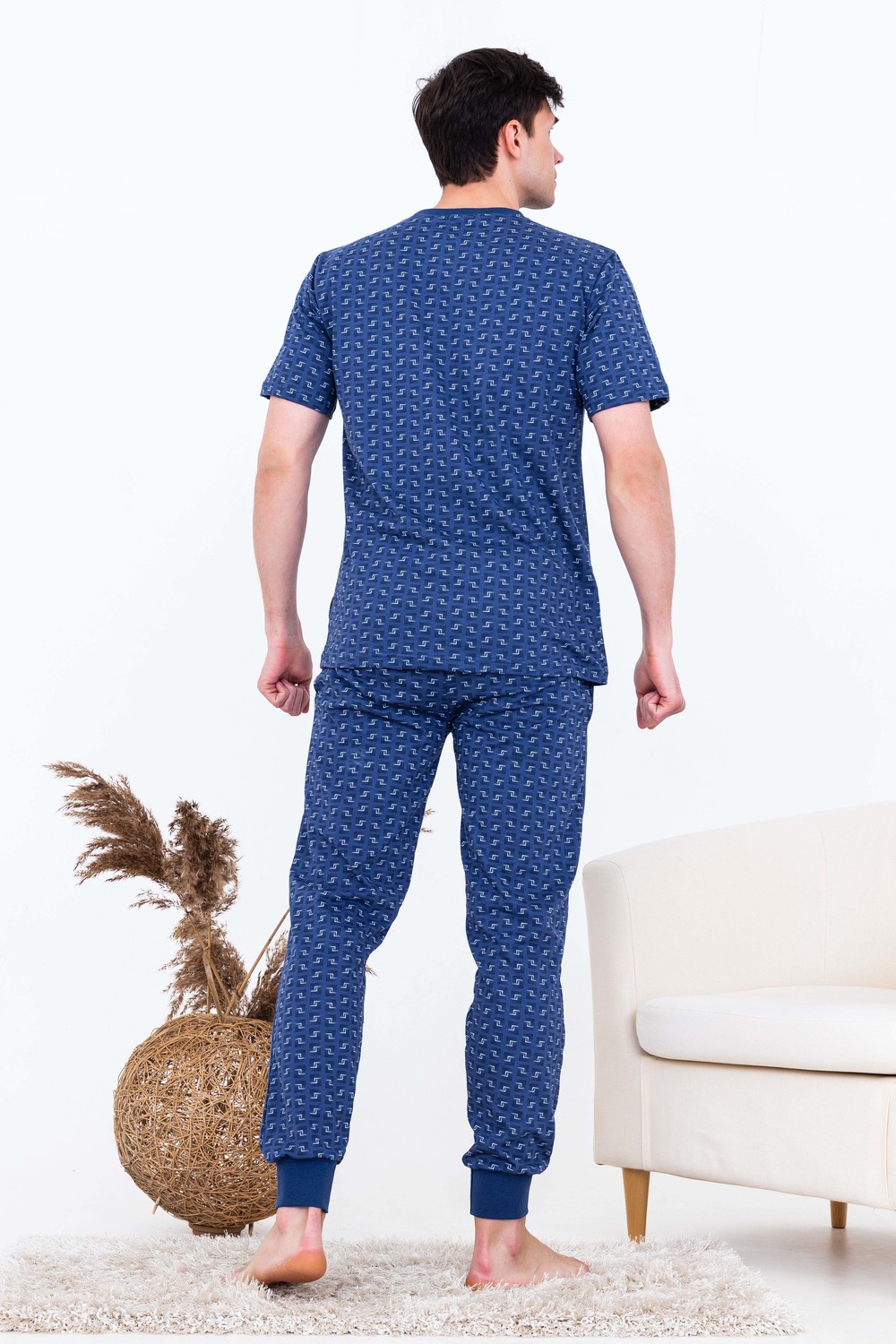 Костюм домашний из 100% хлопка. Очень уютный и удобный. Горловина и манжеты брюк выполнены из эластичной резинки-кашкорсе. Благодаря наличию лайкры в манжетах после стирки они не вытягиваются. Карманы в боковых швах брюк. Пояс на плотной резинке 2 см. Костюм можно с удовольствием носить на любимой даче.