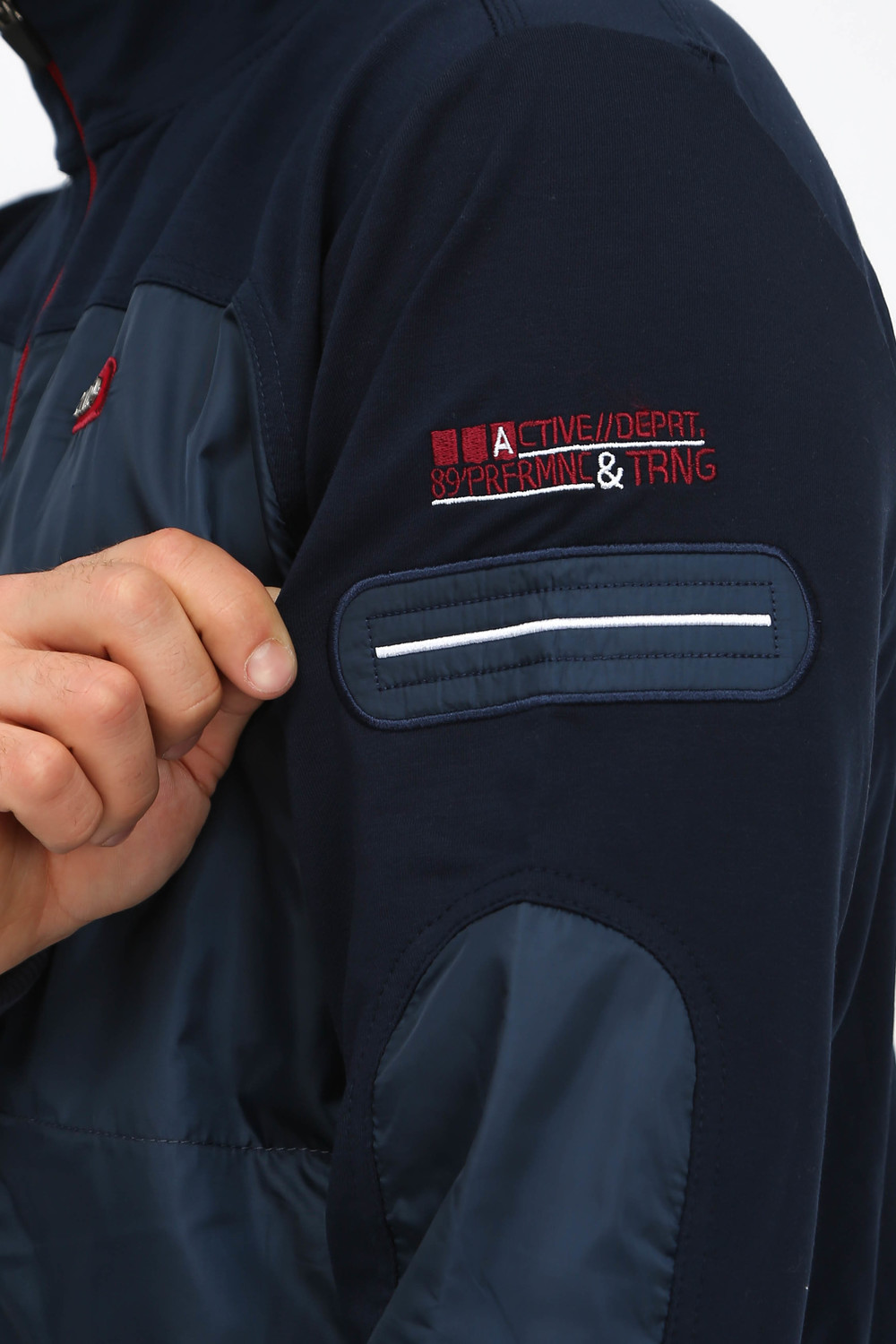 Спортивный мужской костюм. Кофта на молнии, спереди и на рукавах декоративная вставка из плащевки, сбоку вышивная надпись. Воротник - стойка, низ кофты и рукава на манжетах. Брюки прямого кроя, карманы на молнии. Костюм отличного качества из турецкой ткани. Подойдет для прогулок, спорта, отдыха.