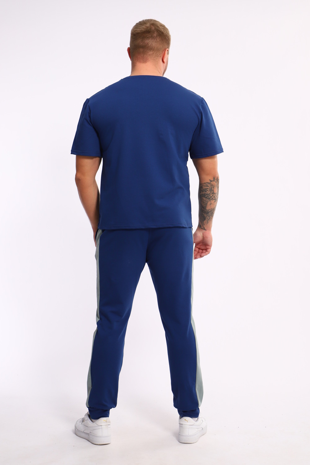 Стильный мужской костюм из мягкого и приятного на ощупь материала . Комплект состоит из футболки свободного кроя и комфортных прямых брюк с эластичным поясом и контрастной вставкой по бокам. Лаконичный дизайн делает этот костюм универсальным выбором для повседневной носки, прогулок или активного отдыха. Идеально сочетается с кроссовками для создания модного спортивного образа.