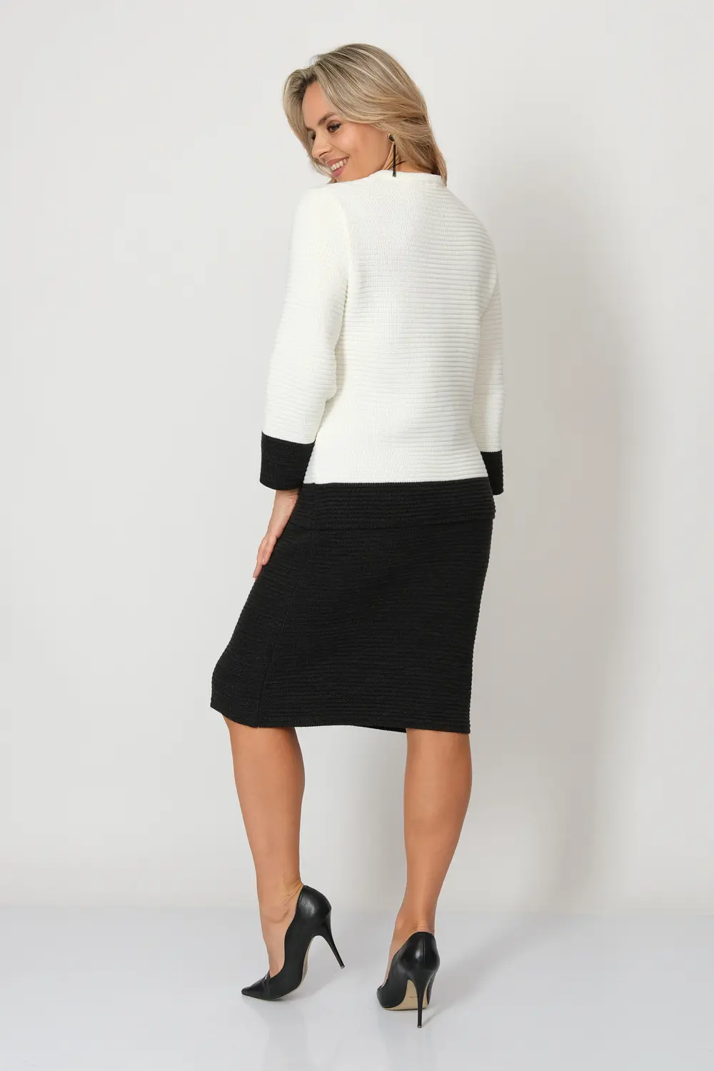 Юбка-карандаш длиной до колена. Юбка и джемпер выполнен переплетением образующим валики. Костюм выполнен из полушерстяной пряжи отлично согреет вас в прохладное время года.