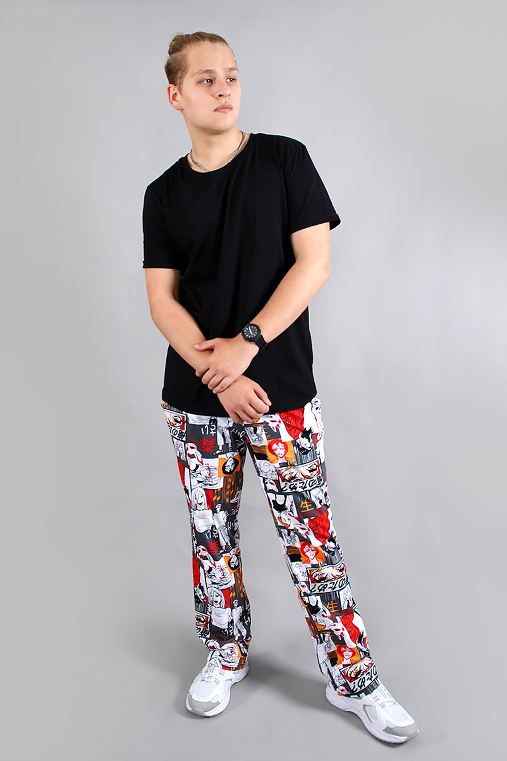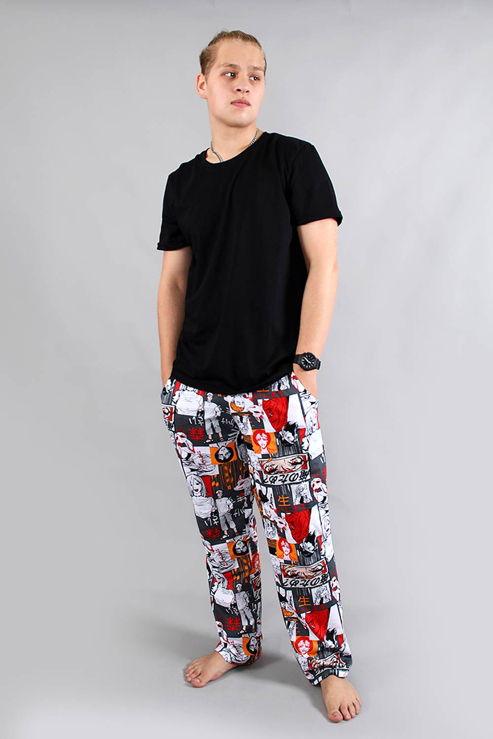 Костюм мужской с брюками. Данная модель выполнена из трикотажного полотна кулирка (хлопок 100%). Брюки с поясом и боковыми карманами. Отлично подходит для дома и отдыха.