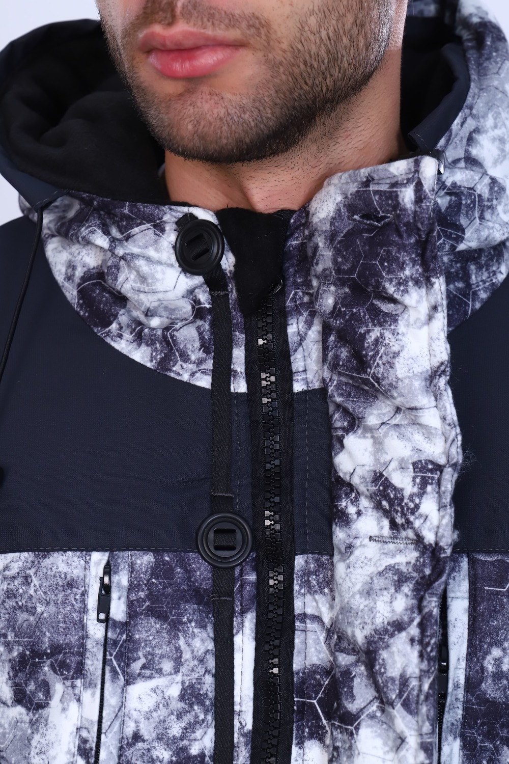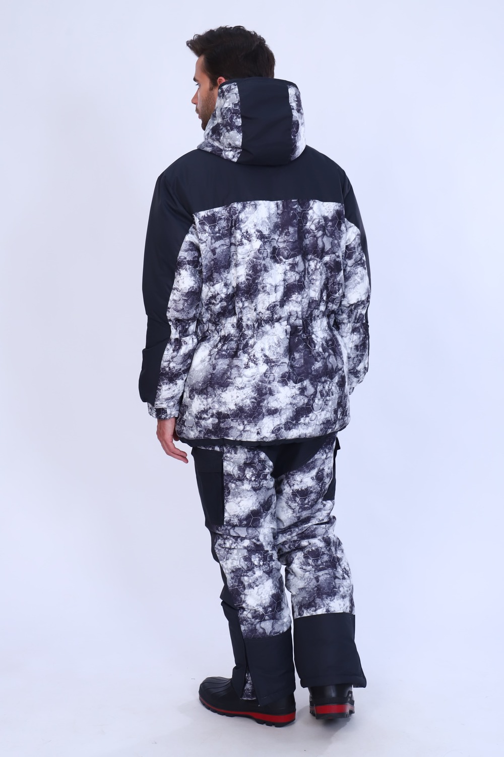 Костюм горка зимний мужской для активного отдыха. Горка зима выполнен из мембранной ткани, которая защитит вас от ветра и дождя. Зимний костюм для рыбалки состоит из куртки и полукомбинезона, утеплитель синтепон 450 гр. Куртка с центральной застежкой на молнию, с ветрозащитной планкой, застегивающаяся на шесть канадских пуговиц. Штаны дополнены двумя карманами и манжетами на резинке, чтобы обеспечить надежное прилегание и не допускать попадание влаги и грязи. Костюм зимний мужской Горка - отличный вариант спортивной одежды для активного отдыха рыбалки и охоты. Костюм туристический это еще и универсальный подарок мужчине на любой праздник Новый Год, 23 Февраля. Куртка с центральной застежкой на молнию, с ветрозащитной планкой, застегивающаяся на шесть канадских пуговиц. На груди прорезные карманы на молнии. Два нижних накладных кармана с фигурным клапаном. По линии талии находится кулиса. Капюшон регулируется кулисами и фиксатором. Рукава с фигурными налокотниками и трикотажными манжетами, по линии локтя кулиса, выше расположены накладные карманы с фигурными клапанами. По низу куртки, для регулировки объема, предусмотрена кулиса.