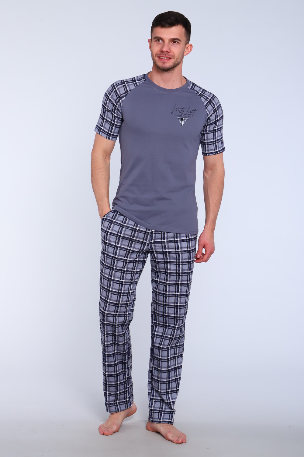 Домашний костюм мужской: футболка и штаны, отличный вариант как одежда для дома и сна. Выполнен в свободном крое, поэтому он не сковывает движения. На выбор представлена модель в больших и маленьких размерах. Футболка прямого кроя с коротким рукавом реглан и округлым вырезом, штаны с боковыми карманами. Мужская пижама с коротким рукавом - это отличный подарок для мужчины на Новый Год, 23 февраля, День Рождения. В этом костюме ваш мужчина будет чувствовать себя комфортно и уютно.