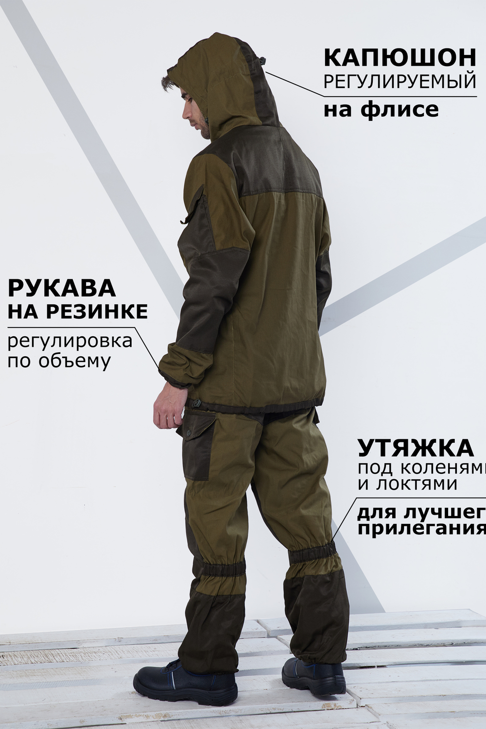 Костюм Горка демисезонный из плотной ткани палатка. Куртка с центральной застежкой на пуговицах утеплитель флис. Подкладка из флиса на капюшоне. Брюки с поясом на эластичной тесьме, застегиваются на пуговицы, подтяжки на брюках отстёгиваются. На брюках широкие шлевки под ремень, есть резинка в области голени для лучшего прилегания к ноге. Для повышения износостойкости костюм имеет накладки в местах, подверженных большей нагрузке (локти, плечи, колени). Костюм мужской демисезонный для охоты, рыбалки, туризма и экстремального отдыха, изготовлен из высокопрочной ткани палатка плотность 270 гр./м2. Входящий в состав хлопок придаёт ткани мягкость и эластичность, делает ее приятной на ощупь и не вызывает аллергических реакций. Камуфляжный мужской костюм имеет накладки в местах, подверженных наибольшей нагрузке (локти, колени). Маскировочный брючный тактический костюм горка имеет большое количество карманов. Можно использовать как костюм рабочий, который станет идеальным подарком любимому мужчине, папе, сыну, дедушке на День рождения, Новый год, 23 февраля, на юбилей. Это идеальный мужской костюм для охоты, туризма, для игры в страйкбол, пейнтбол и рыбалки.