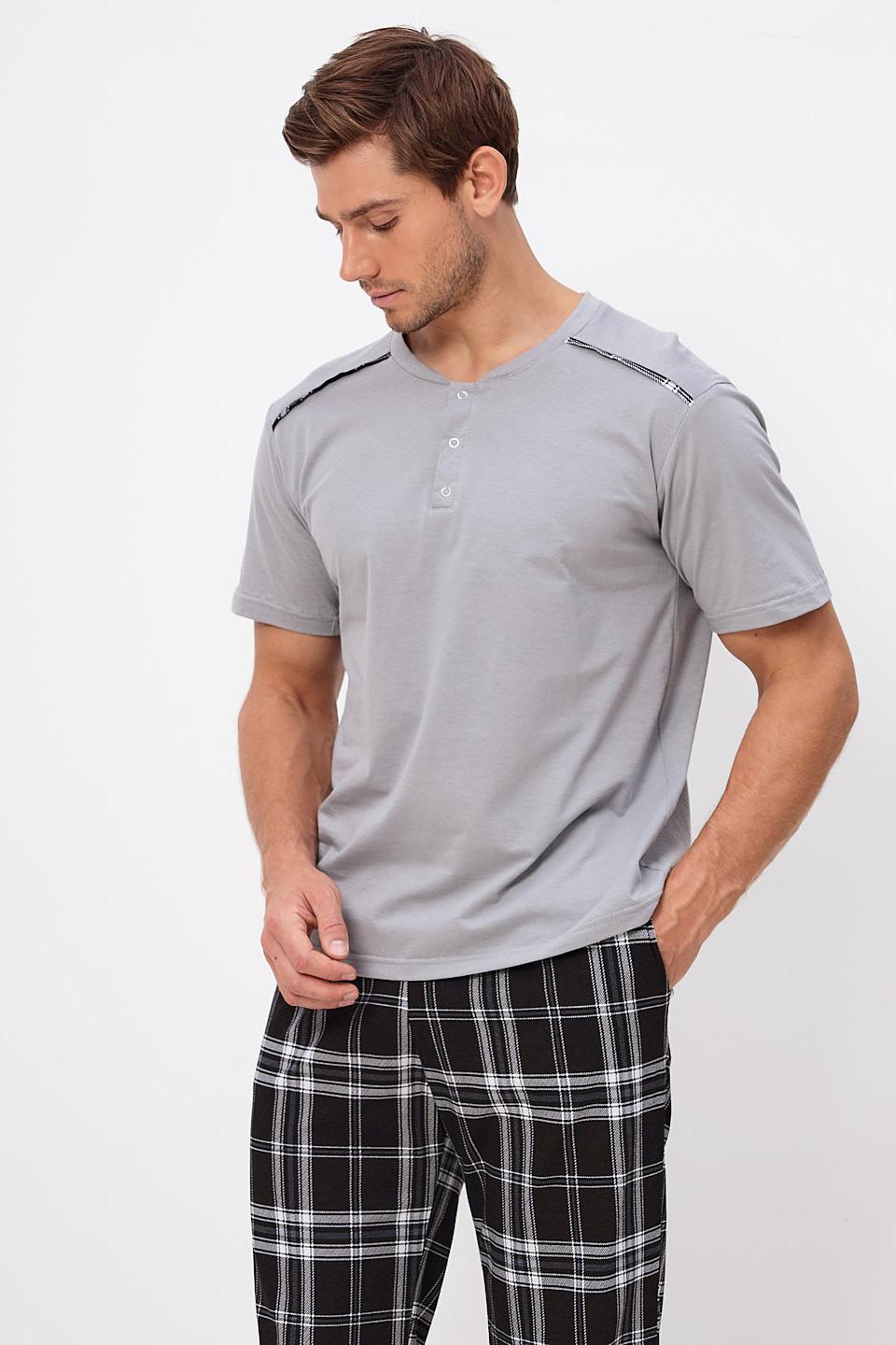 Классический домашний комплект мужской от бренда Lika Dress - идеальный вариант для отдыха, для сна и других домашних активностей. На футболке есть кнопки, которые облегчают надевание и выглядят стильно и современно. Мягкое трикотажное полотно домашней пижамы обеспечит комфорт и свободу движений. Одежда подходит для ночного сна и дневного отдыха. Ношение такого натурального комплекта действует успокаивающе на нервную систему. Низ изделия с ярким и небанальным, немарким принтом делает этот костюм еще более привлекательным. Брючки с удобной посадкой на вшитой резинке и с глубокими карманами. Свободная футболка имеет оригинальный рисунок.