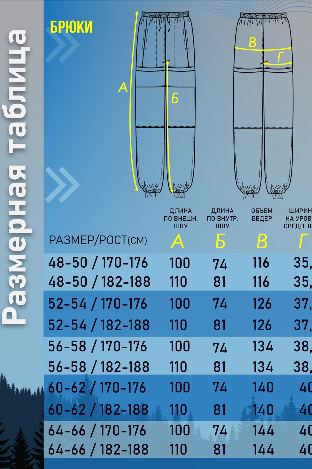 Объем талии: 90 (48-50, 170-176), 90 (48-50, 182-188), 98 (52-54 170-176), 98 (52-54 182-188), 100 (56-58, 170-176), 106 (56-58, 182-188)