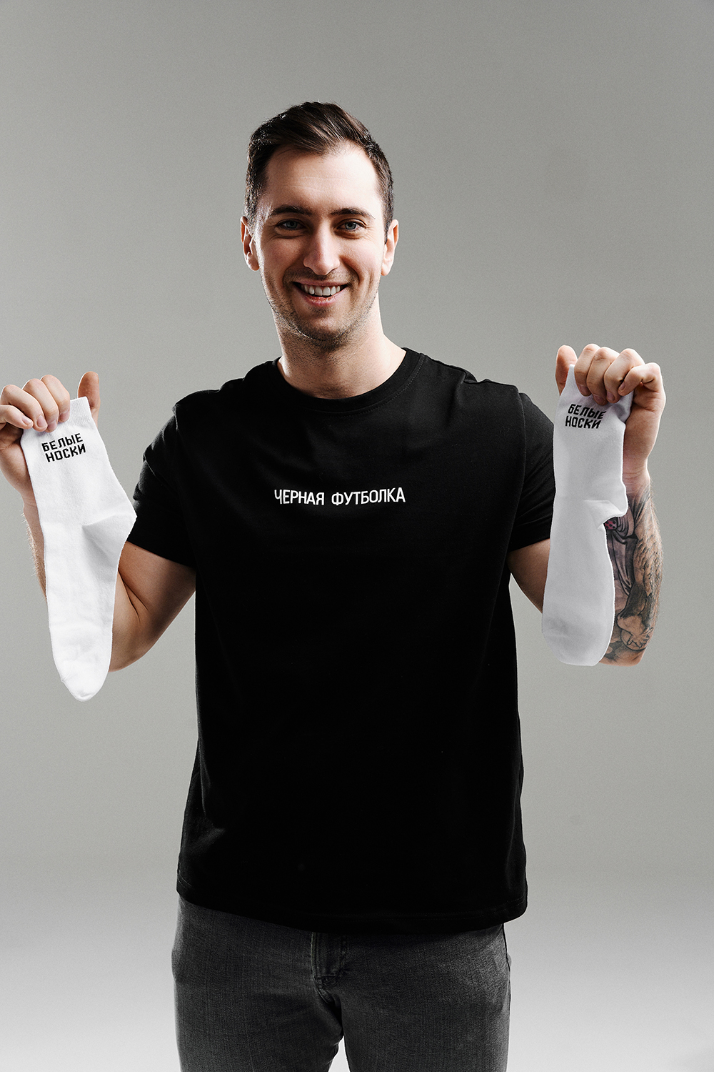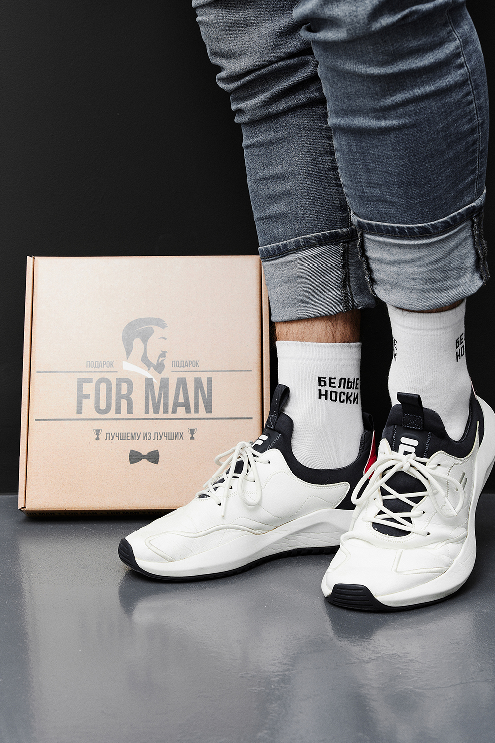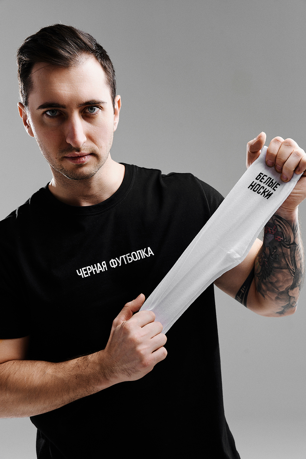 Подарочный набор ЧЕРНАЯ ФУТБОЛКА-БЕЛЫЕ НОСКИ. Черная мужская футболка с принтом и носки с принтом подчеркнут вкус и чувство юмора. Подарочный набор упакован в крафтовую коробку с тематическим принтом. Футболка из 100% хлопка подойдет для повседневной носки и для выхода из дома. Мужская футболка подойдет для занятий спортом и для активных прогулок. Футболка будет отлично сидеть практически на любой фигуре. Носки подойдут к любой одежде и обуви. Изготовлены из высококачественного хлопка, который отлично впитывает влагу, пропускает воздух и подходит даже для самой чувствительной кожи. Хорошо сохраняют форму и цвет, устойчивы к истиранию. Подарочный набор ЧЕРНАЯ ФУТБОЛКА-БЕЛЫЕ НОСКИ будет отличным подарком второй половинке, близкому другу, отцу и дедушке. Рост модели на фото 183 см, размер 52. Размер носков 40-47.
