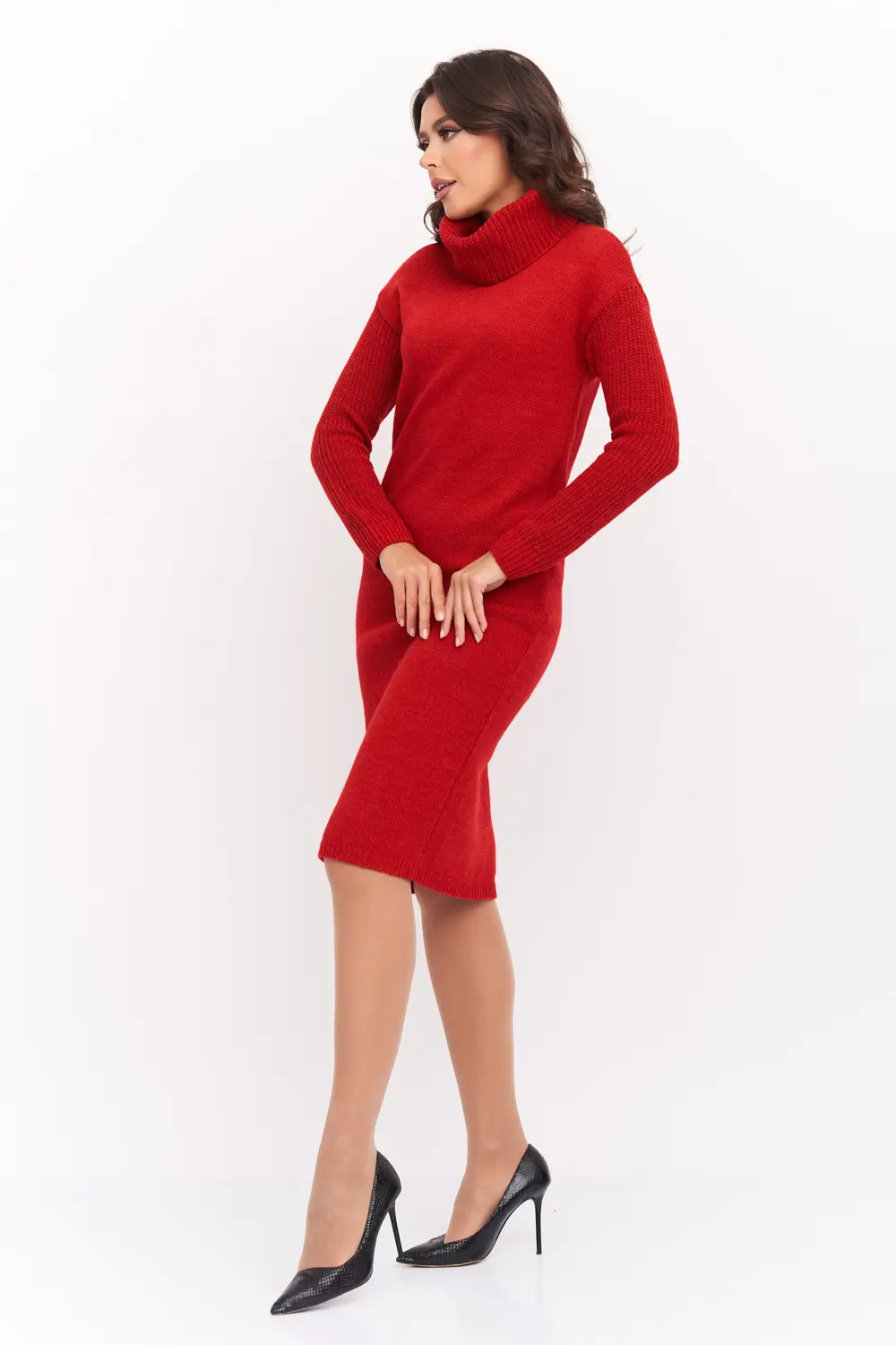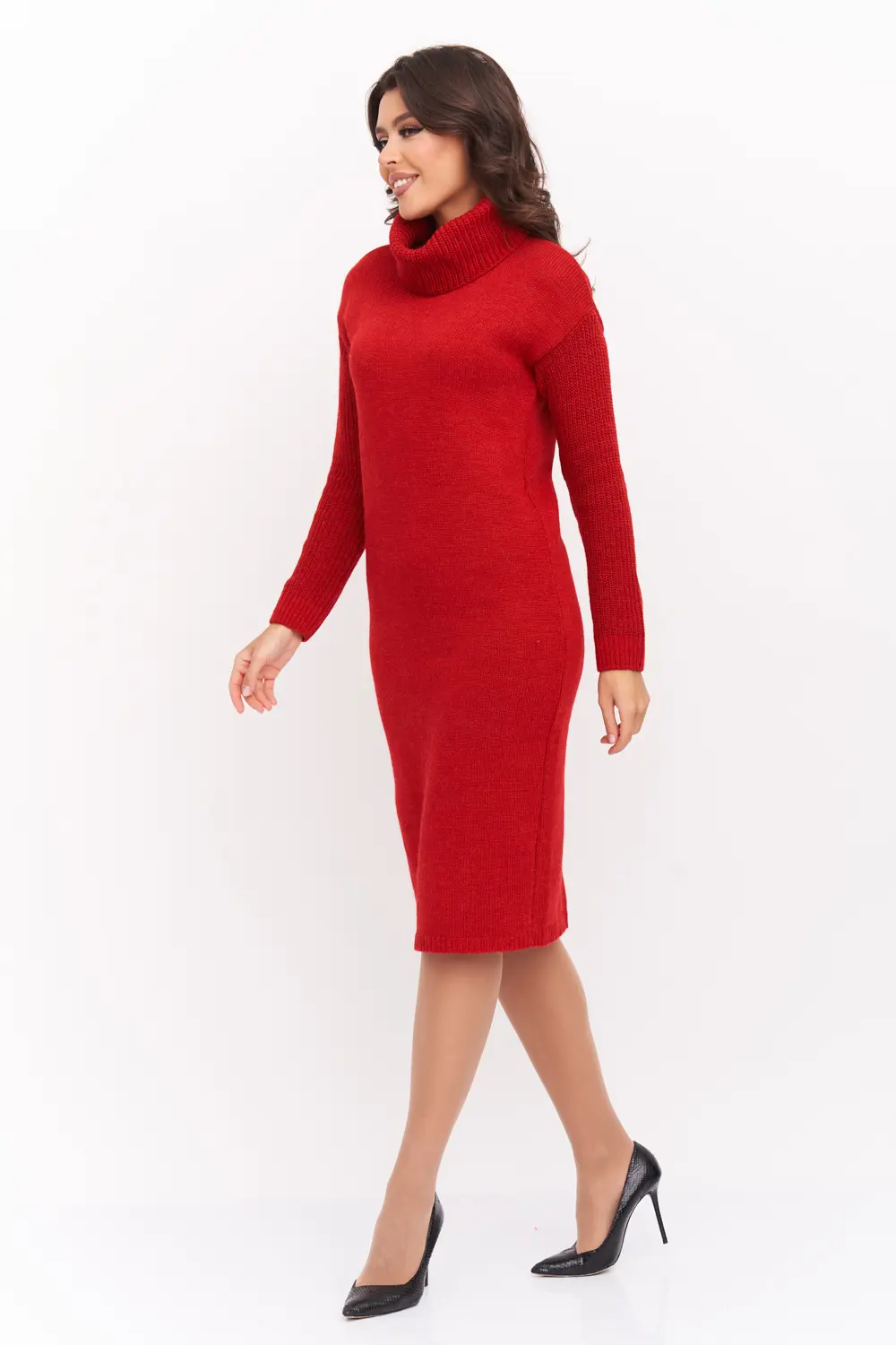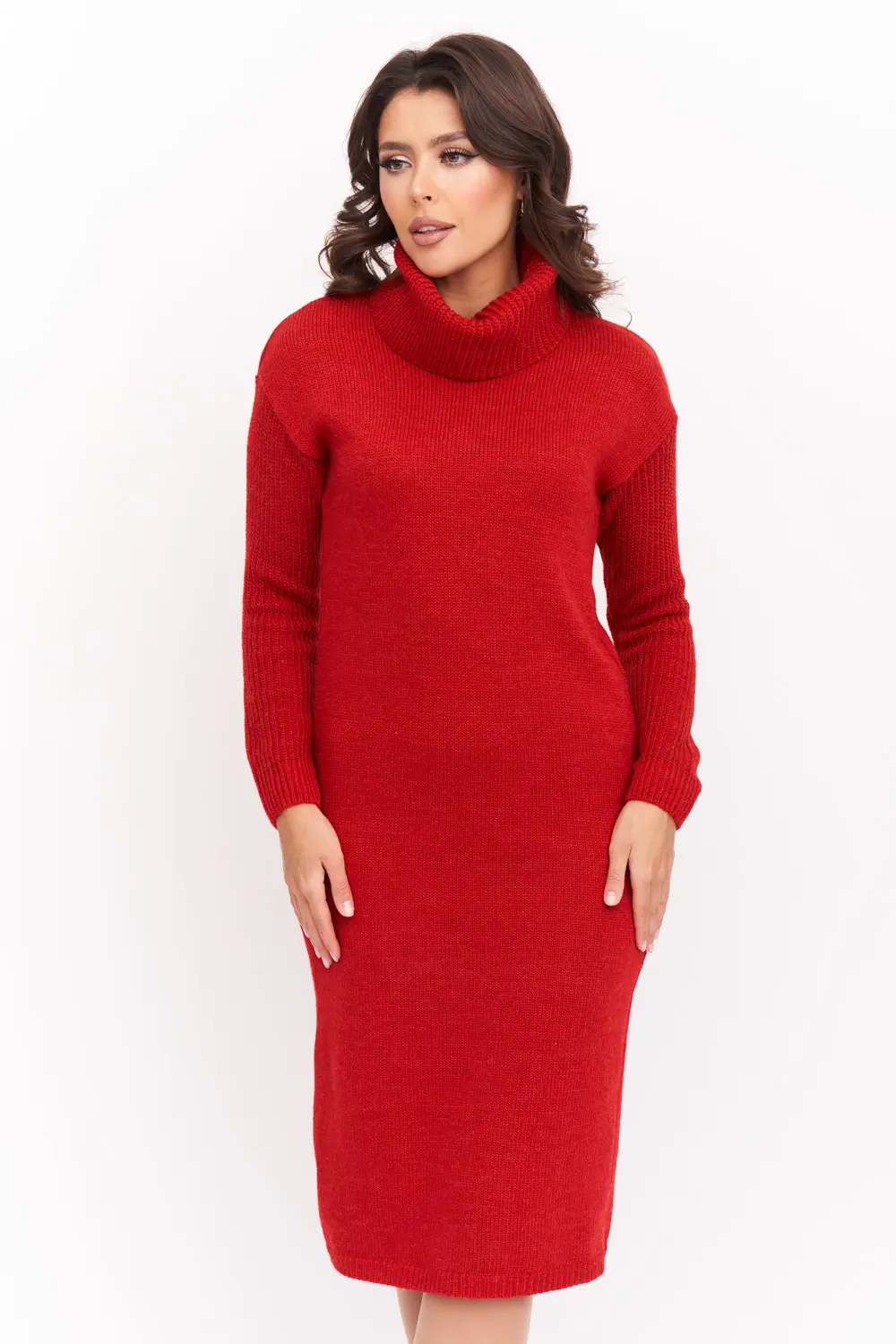 Платье-свитер прямого силуэта комфортной посадки по фигуре. Высокий воротник длинного женского платья защитит от ветра, избавив от необходимости надевать теплый шарф. Модель имеет прямой силуэт с длинным втачным рукавом и спущенное плечо, что делает силуэт зимнего платья более расслабленным. Платье с горлом выполнено из смесового трикотажа, устойчивого к износу и растяжению. Манжеты, воротник и нижняя часть изделия вывязаны эластичной резинкой. Прекрасный выбор на каждый день для работы, в офис, в университет или встречи с друзьями и прогулок.