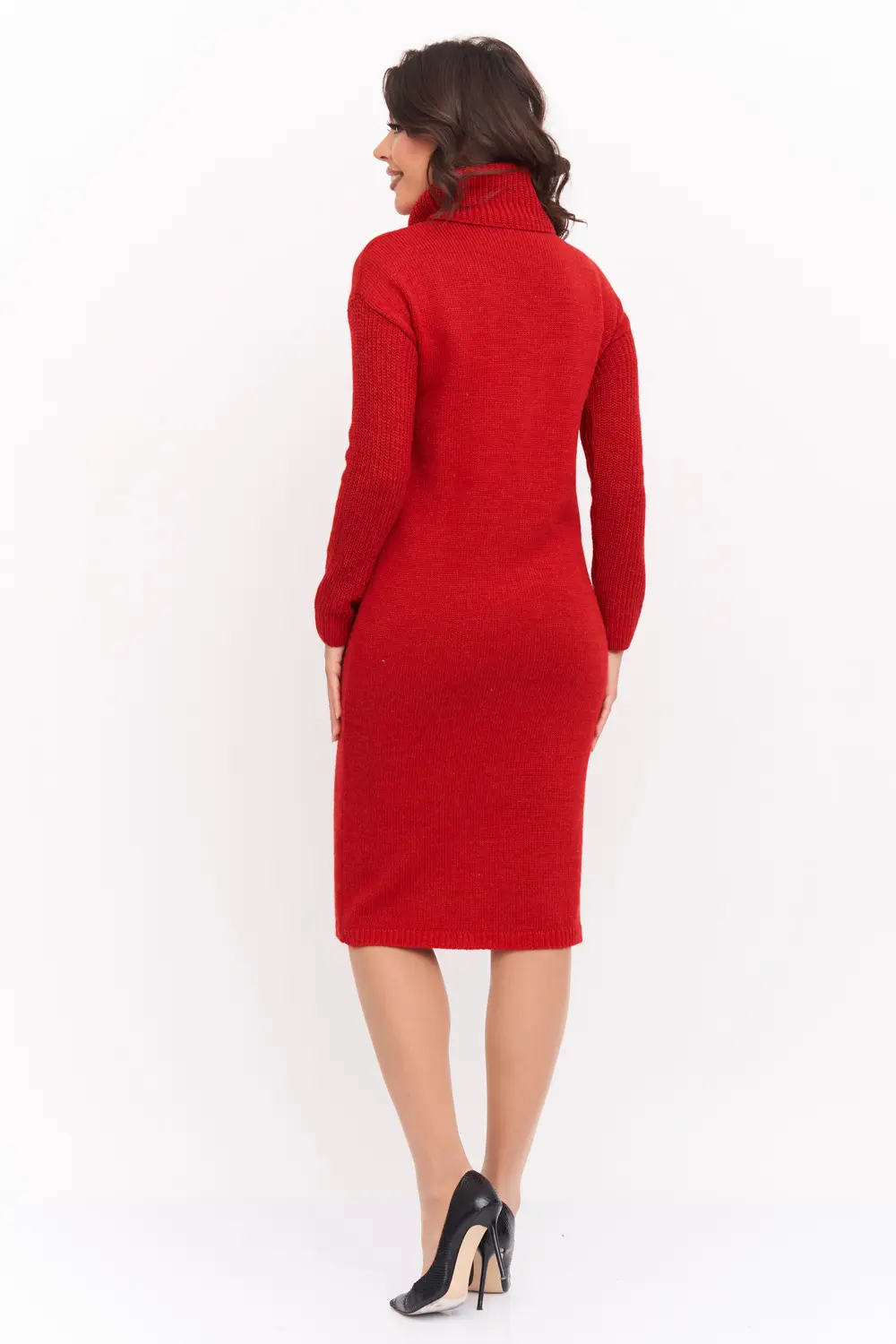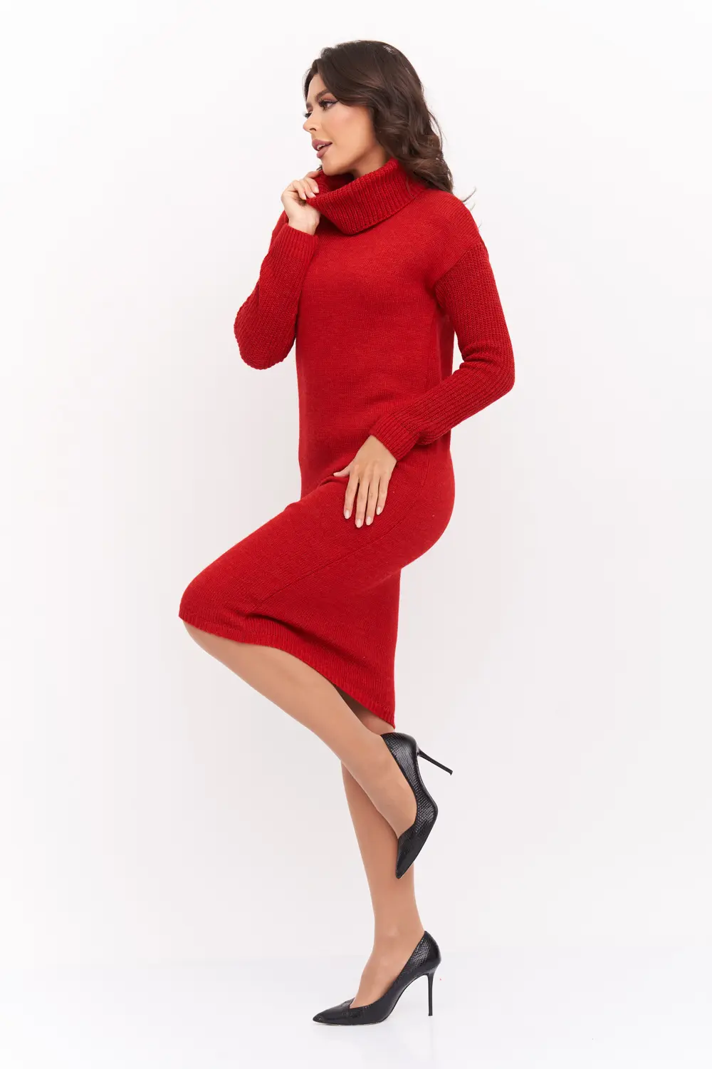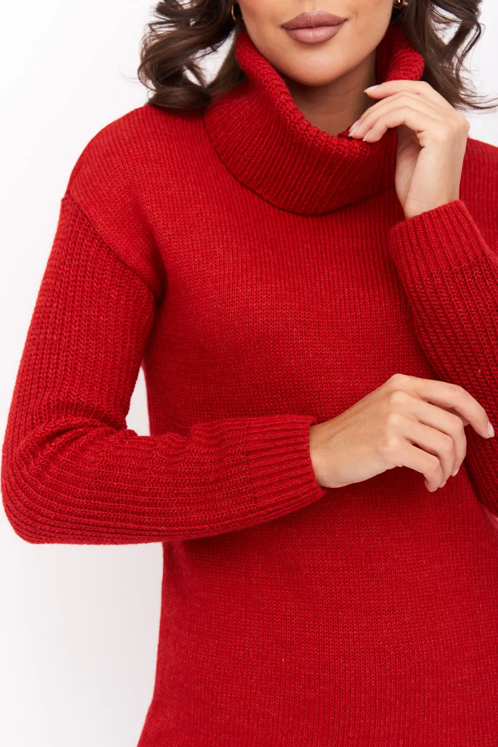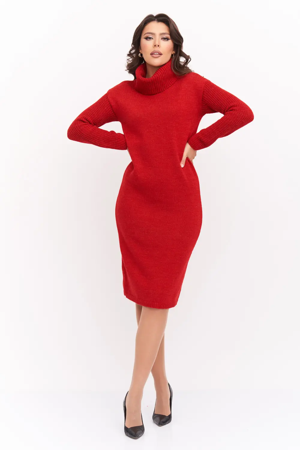 Платье-свитер прямого силуэта комфортной посадки по фигуре. Высокий воротник длинного женского платья защитит от ветра, избавив от необходимости надевать теплый шарф. Модель имеет прямой силуэт с длинным втачным рукавом и спущенное плечо, что делает силуэт зимнего платья более расслабленным. Платье с горлом выполнено из смесового трикотажа, устойчивого к износу и растяжению. Манжеты, воротник и нижняя часть изделия вывязаны эластичной резинкой. Прекрасный выбор на каждый день для работы, в офис, в университет или встречи с друзьями и прогулок.