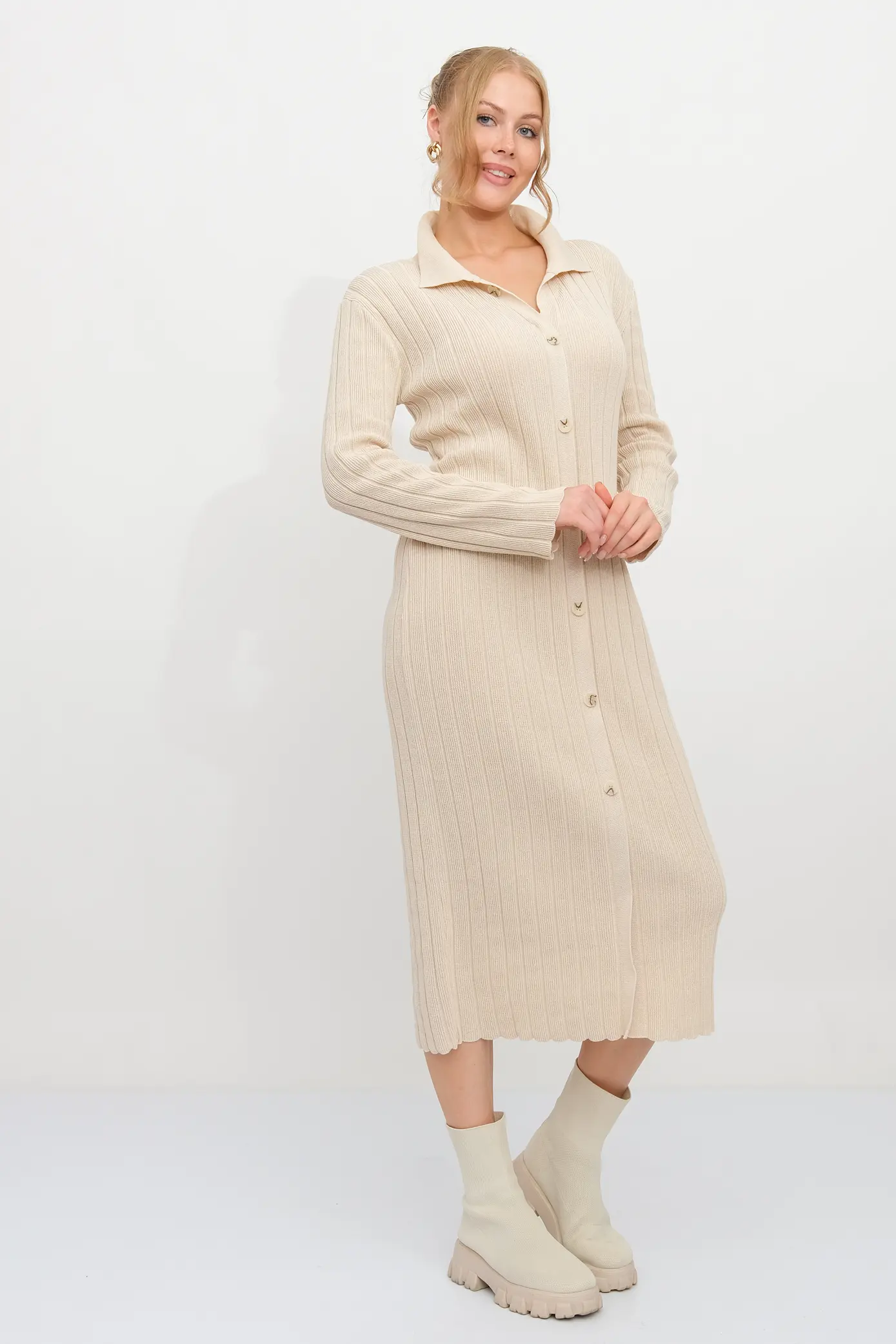 Женское стильное и элегантное трикотажное платье, которое станет идеальным выбором для любого мероприятия. Базовое однотонное платье лапша с длинным рукавом изготовлено из качественной и эластичной пряжи, которая обеспечит комфорт и удобную посадку на фигуре. Прямой крой и длина макси, позволят чувствовать себя свободно и изыскано. Элегантный воротник, пуговицы добавляют изящества и придают образу особый шарм. Платье станет отличным выбором для создания неповторимого образа на любом мероприятии, будь то вечеринка, карпоратив или романтический ужин.