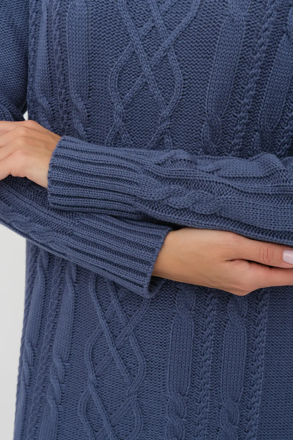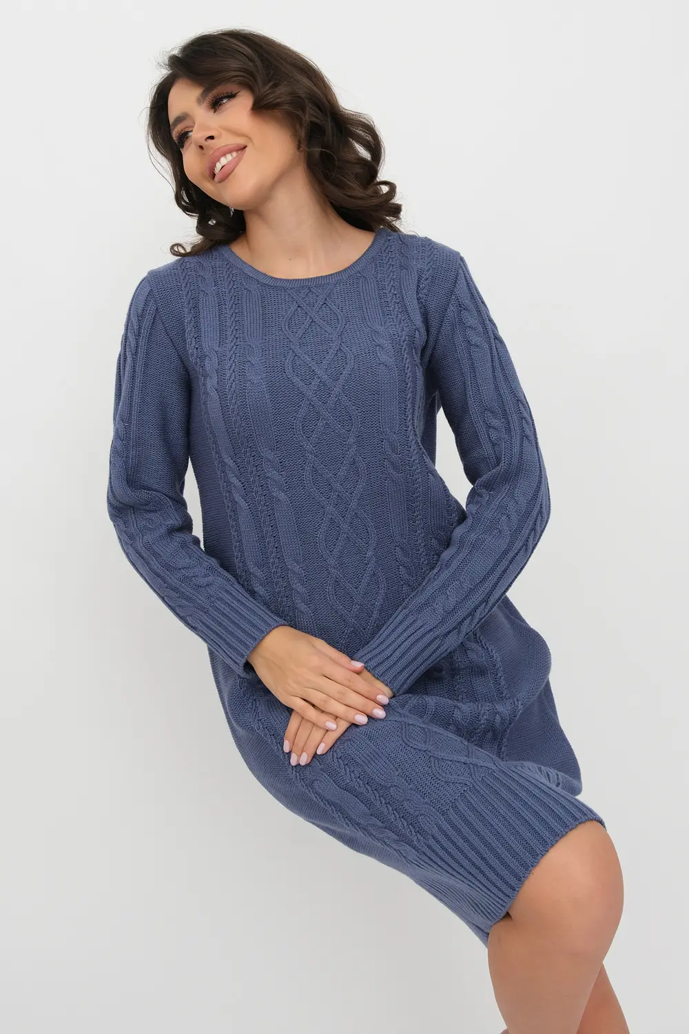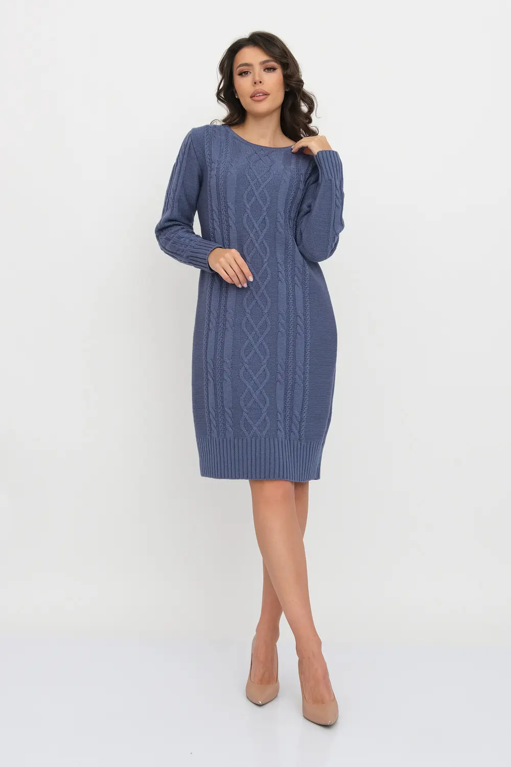 Вязаное платье женское полуприлегающего силуэта . Рукава втачные длинные. Горловина круглая, обработана бейкой. Платье с фактурным узором косами станет украшением вашего осеннего гардероба. Женское вязаное платье изготовлено из мягкой и приятной к телу турецкой пряжи с содержанием шерсти.и подходит для использования в зимний период.