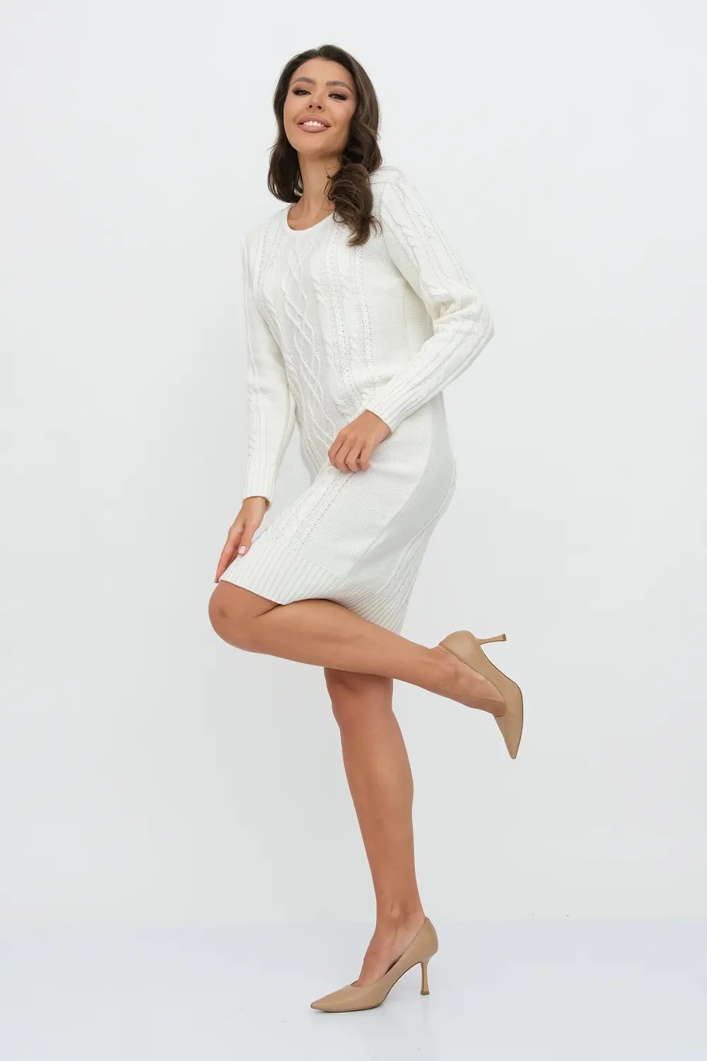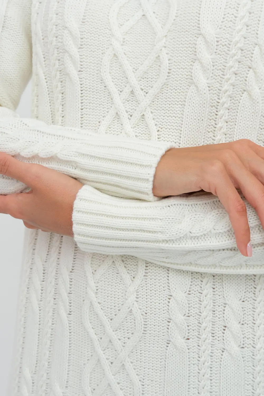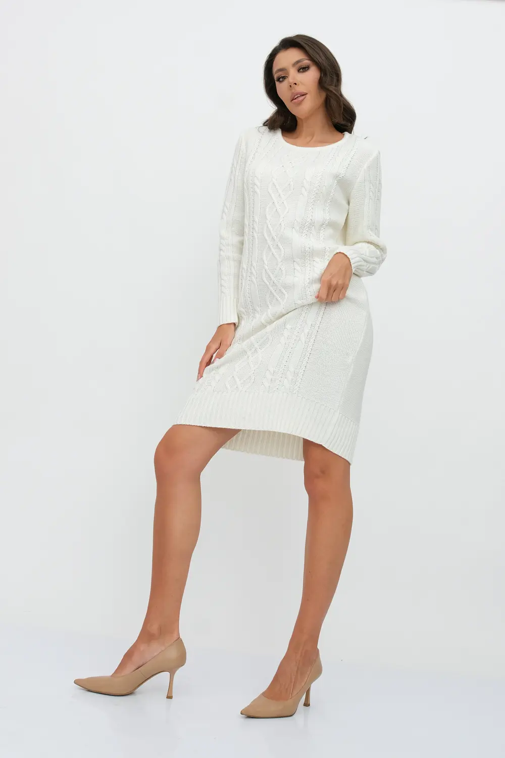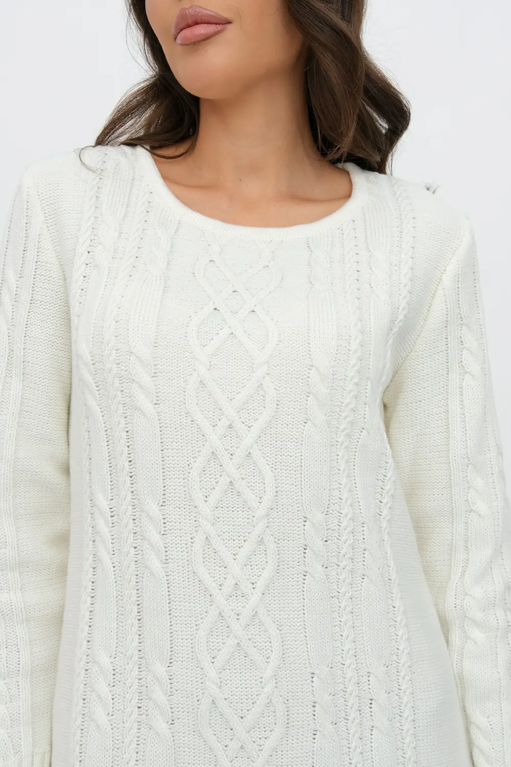Вязаное платье женское полуприлегающего силуэта . Рукава втачные длинные. Горловина круглая, обработана бейкой. Платье с фактурным узором косами станет украшением вашего осеннего гардероба. Женское вязаное платье изготовлено из мягкой и приятной к телу турецкой пряжи с содержанием шерсти.и подходит для использования в зимний период.