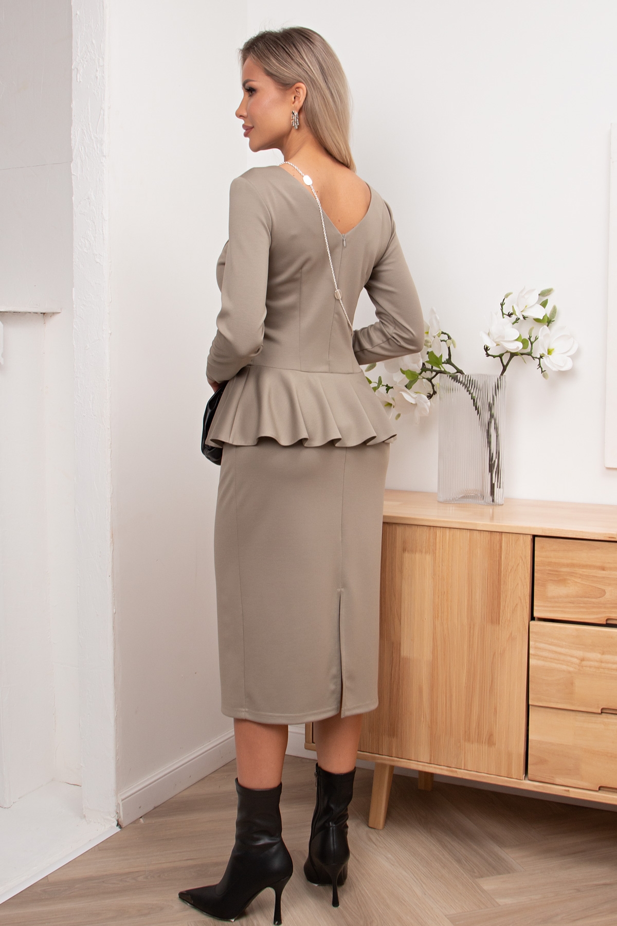 Элегантное платье полуприлегающего силуэта выполнено из трикотажного полотна. Длинный втачной рукав. Горловина на внутренней обтачке. По спинке застежка на потайную молнию. Модель отрезная по линии талии оформлена баской. Низ ровный, сзади разрез.