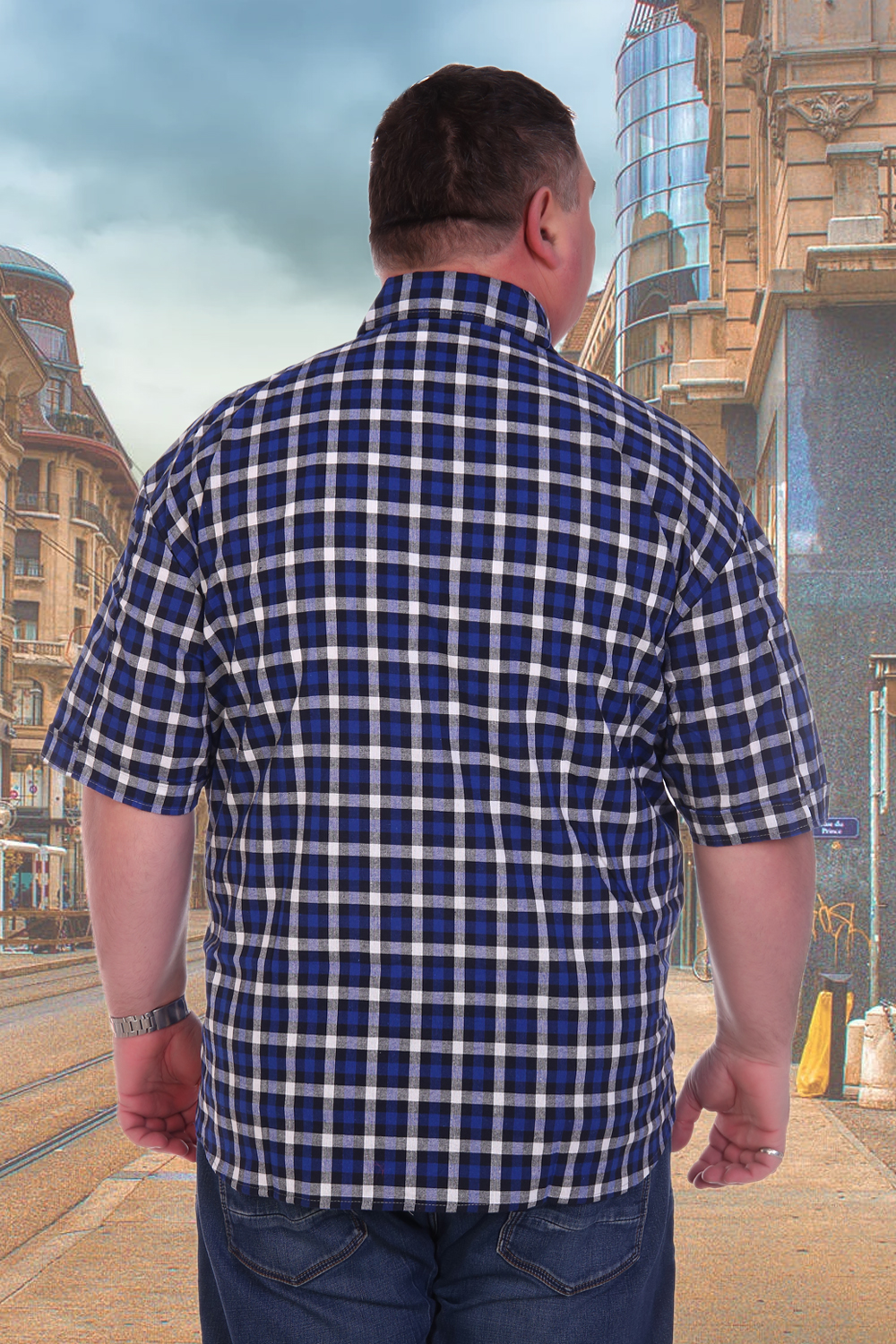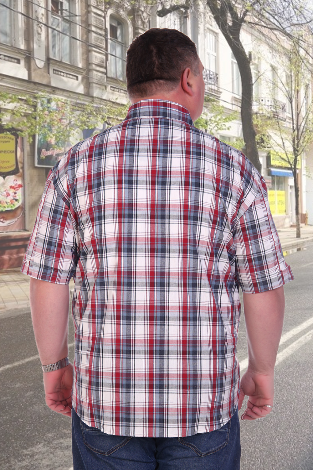 Мужская рубашка в клетку с коротким рукавом. Ткань шотландка 100% хлопок. Модель классического кроя дополнена двумя накладными карманами на груди плюс два клапана с пуговицей. Ворот проложен флизелином с отстрочкой. Данный товар по цвету не подбирается.