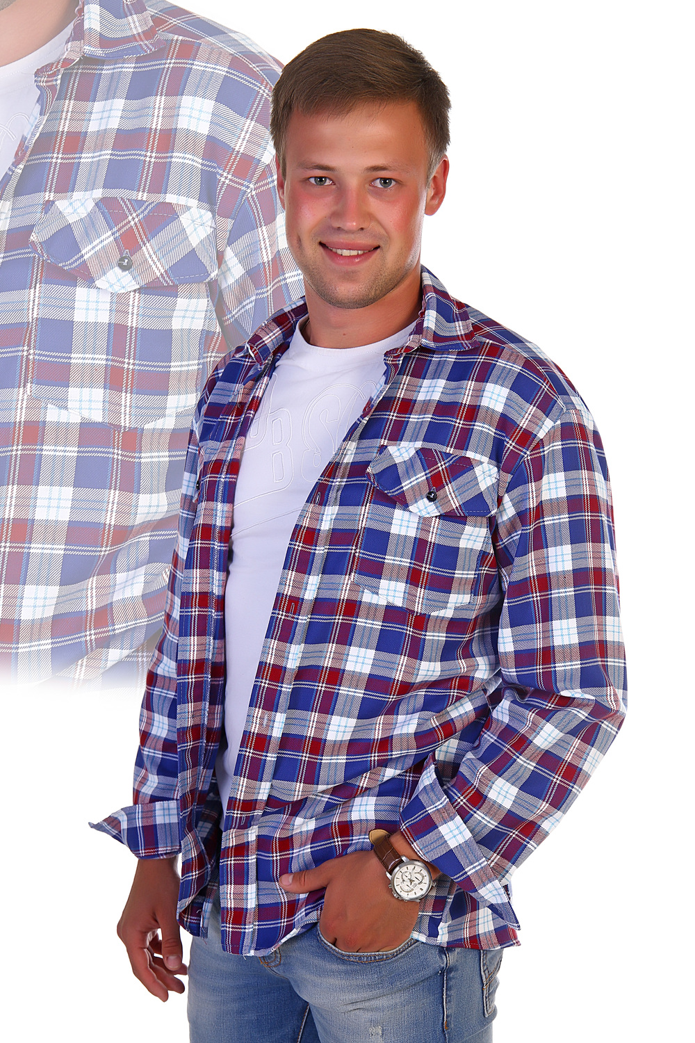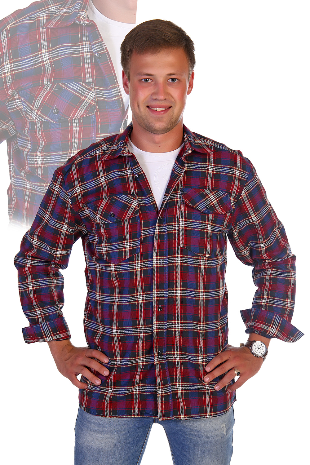 Мужская рубашка в клетку с длинным рукавом. Ткань фуле - ворсовая 100% хлопок. Модель свободного кроя, дополнена двумя накладными карманами и клапанами с пуговицами. Планка на полочке цельнокроеная, застегивается на пуговицы. Плечо приспущено, рукав до запястья на манжете. Воротник на стойке, проложен флизелином с отстрочкой. Низ изделия застрачивается швом в подгибку при помощи специального приспособления. Внимание ! Данный товар по цвету не подбирается.